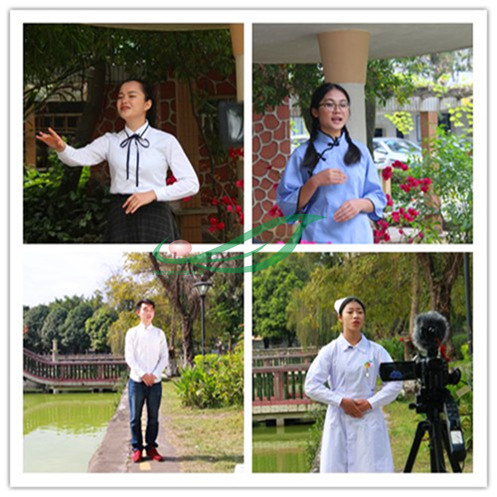 瞧!南宁校区桃李苑和黎塘校区水上公园的校园一角,参加征文演讲的选手们正在老师的指导下精彩演讲,拍摄的老师专注投入还不时加入讨论。听!她们投入而动情的演讲,有的诉说起现代中职生对工匠精神的理解和秉承,有的则满怀情感地抒发着当代学子永远跟党走的誓言与豪迈。看!风景独好的广西民族博物馆的空旷草坪上,以自然景物为背景,200多名南卫学子时而翩翩起舞、时而龙腾虎跃、时而阿娜多姿,13个舞蹈、言语、声乐、情景剧尽数上场尽情展示;在黎塘校区多功能的舞台上,音乐和着节拍,13个舞台类参赛作品也在青春学子的激情表演中完美演绎。再来看看,喧闹的校园唯独那闹中取静的桃李苑深处,几张桌子,一群满脸兴奋的同学,在镜头之下,沉着、自信而不失优雅地展示着各自的爱好特长,快看!或挥豪泼墨,或穿针引线,或挥动手中的画笔慢写、速描,都一气呵成!路过的师生不禁跓足观望,当摄影的老师每一次举手伸出拍摄圆满的OK手势之时,都引发大伙一阵的掌声和吹呼。