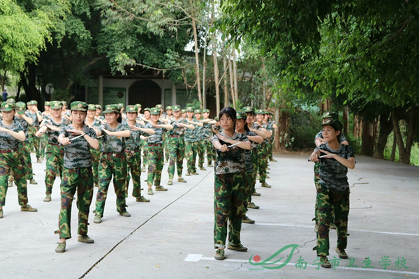 10月20日-11月3日,南宁市卫生学校2016级高职护理专业400多名学生来到南宁市郊外的祺诚国防训练基地,与广西医科大学其他大学生们一起开始了步入大学的第一课——军训。