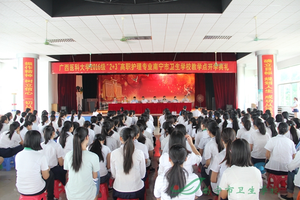 9月21日、23日,南宁市卫生学校分别在两校区举行2016级(2+3)高职护理专业开学典礼。随着开学典礼序幕的拉开,南宁市卫生学校共有410名学生正式步入了向往已久的大学殿堂,成为广西医科大学其中一员,开始了憧憬已久的大学生活。