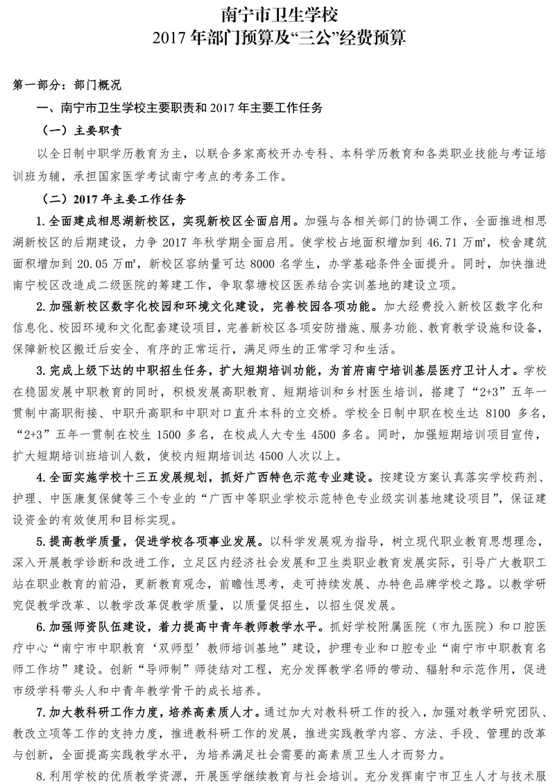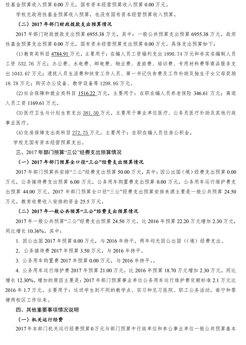 南宁市卫生学校2017年部门预算及“三公”经费公开