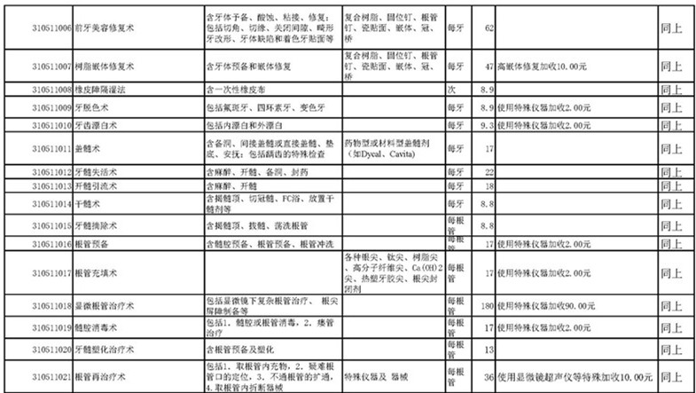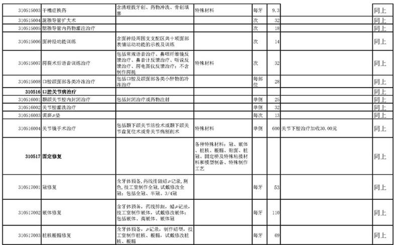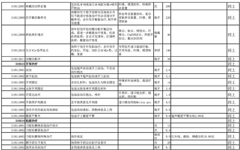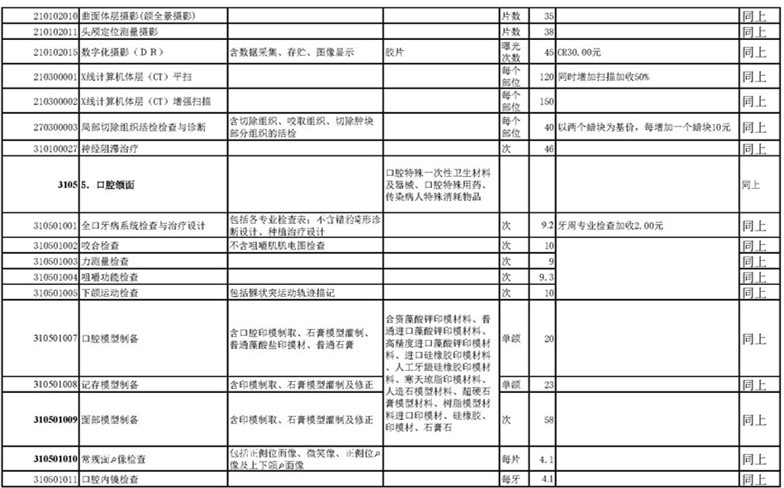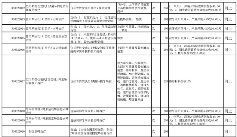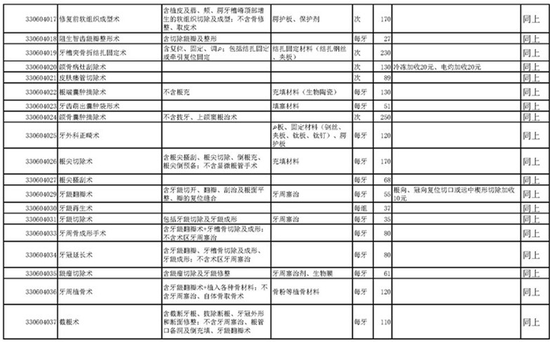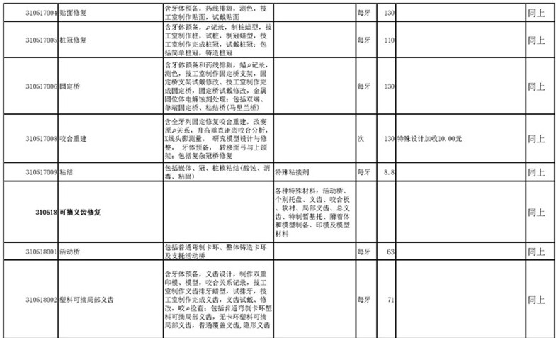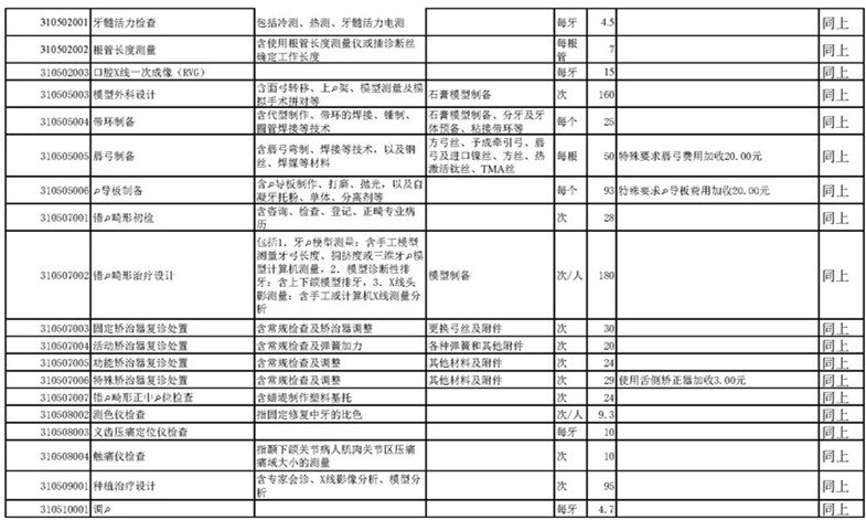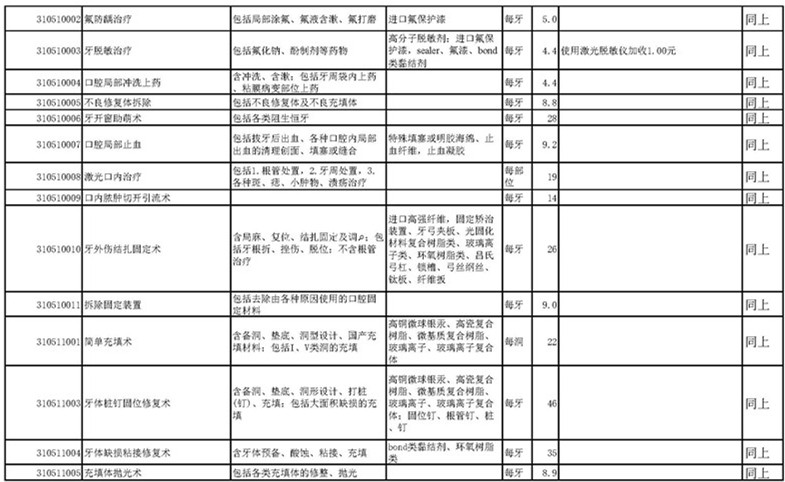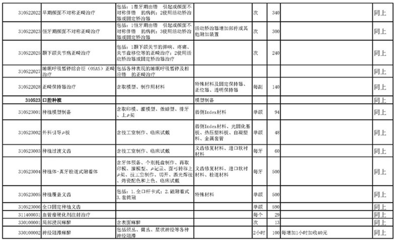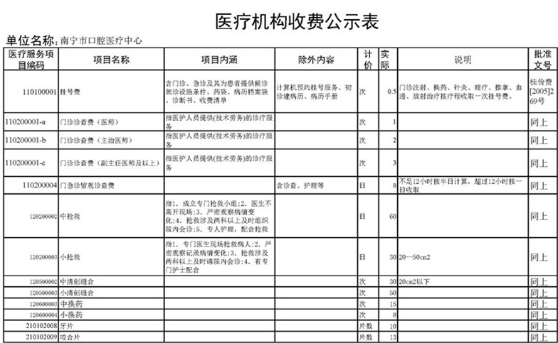 南宁市口腔医疗中心收费公示表