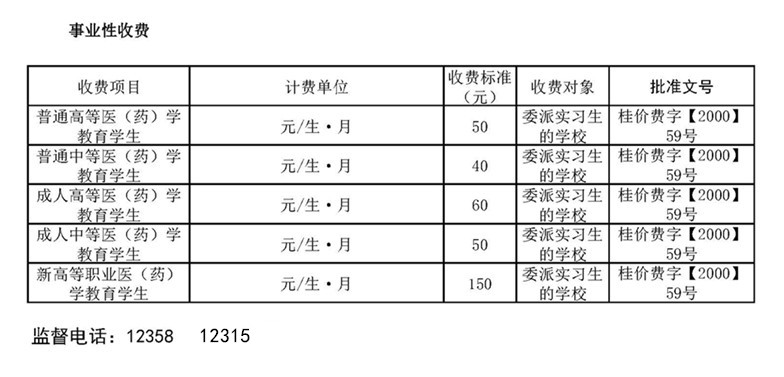 南宁市卫生学校收费公示表
