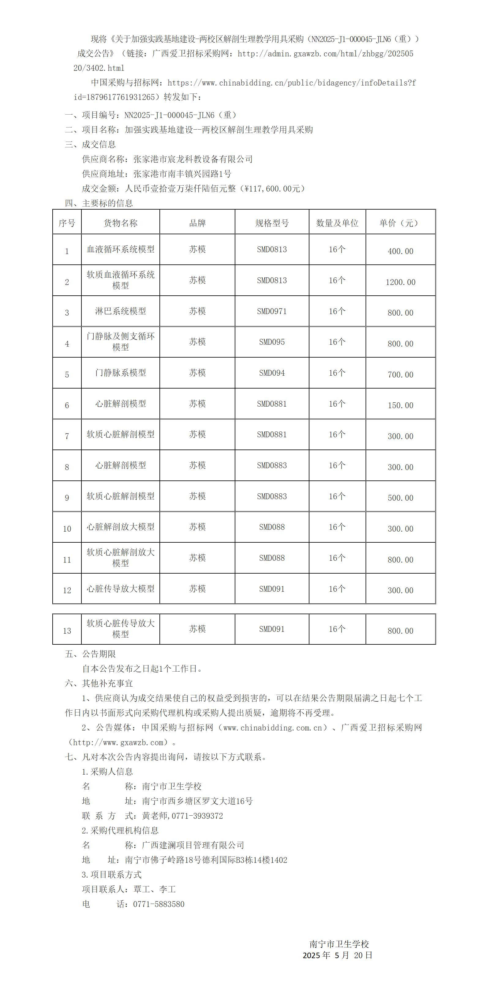 关于加强实践基地建设-两校区解剖生理教学用具采购成交公告