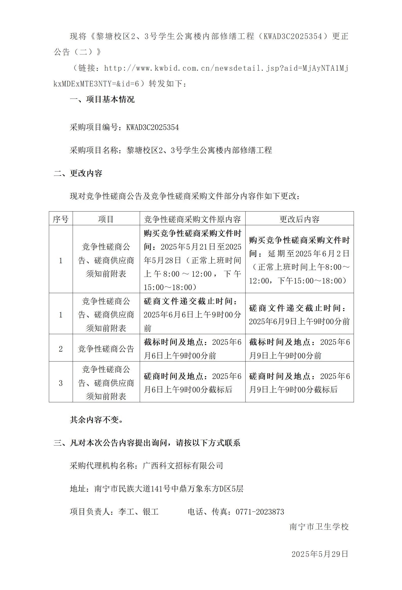 黎塘校区2、3号学生公寓楼内部修缮工程(KWAD3C2025354)更正公告(二)