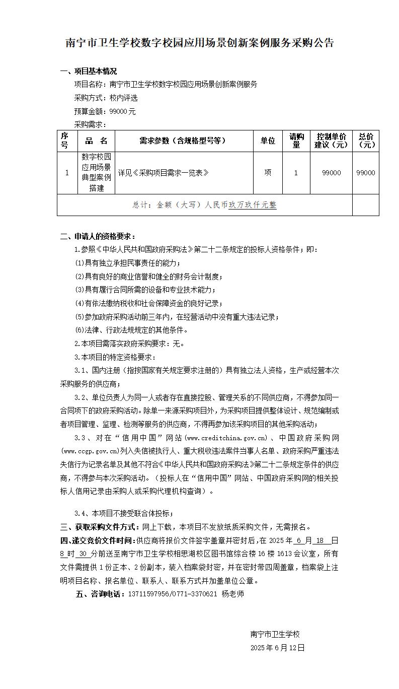 附件:南宁市卫生学校数字校园应用场景创新案例服务采购文件.doc