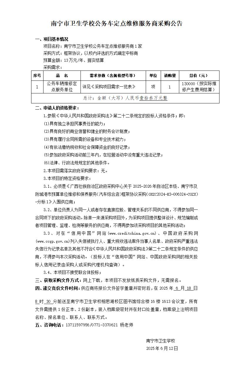 附件:南宁市卫生学校公务车定点维修服务商采购文件.docx