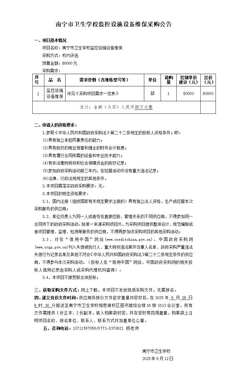 附件:南宁市卫生学校监控设施设备维保项目采购文件.doc