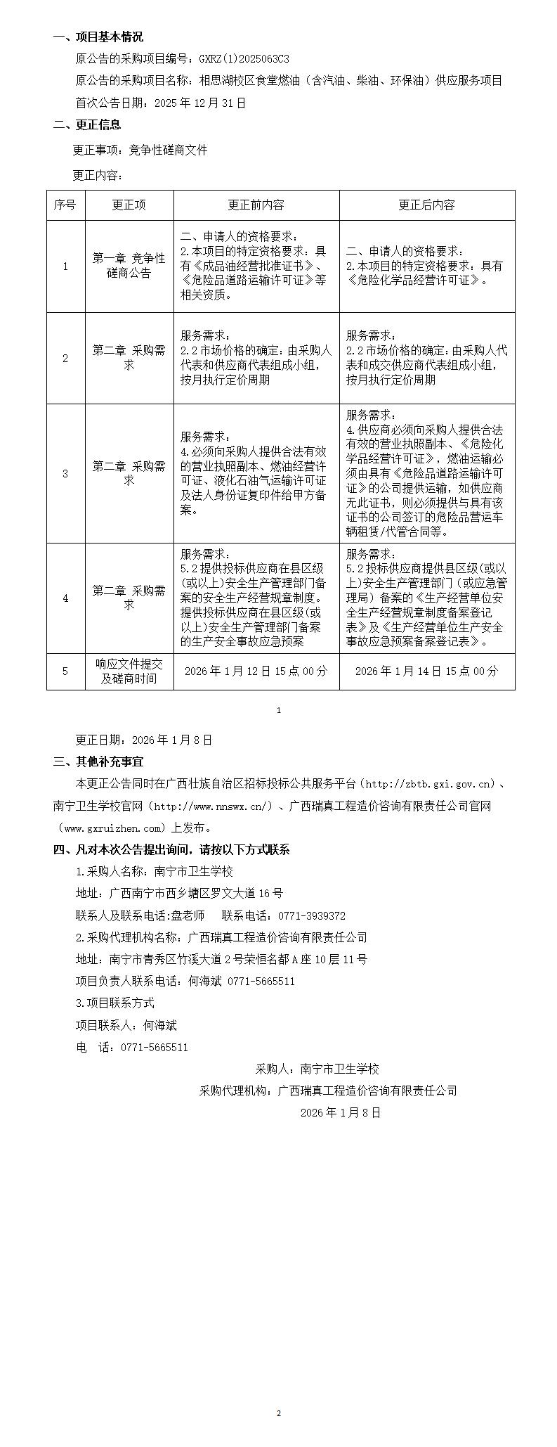 广西瑞真工程造价咨询有限责任公司关于相思湖校区食堂燃油(含汽油、柴油、环保油)供应服务项目的更正公告