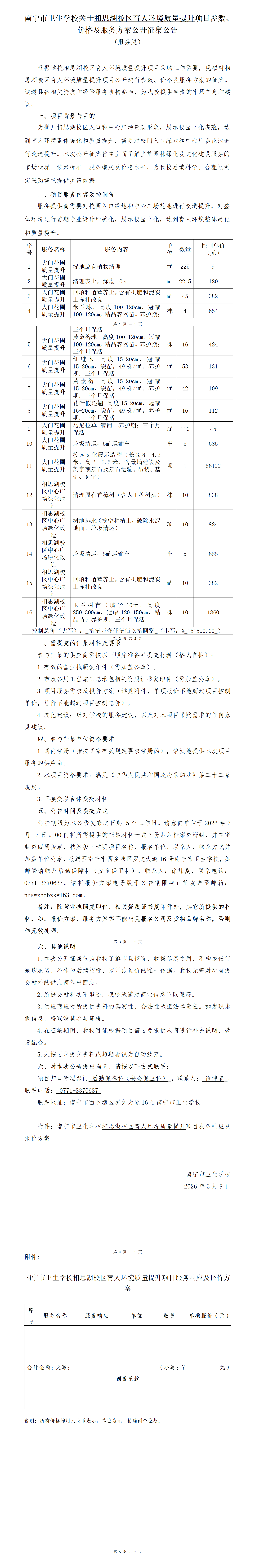 附件:南宁市卫生学校相思湖校区育人环境质量提升项目服务响应及报价方案.docx