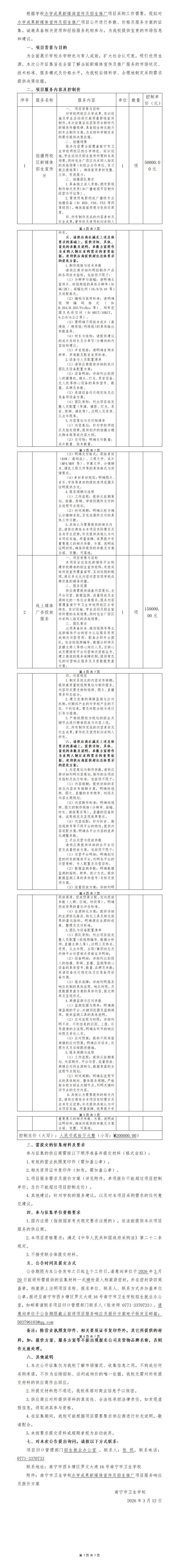 附件:南宁市卫生学校办学成果新媒体宣传及招生推广项目服务响应及报价方案.docx