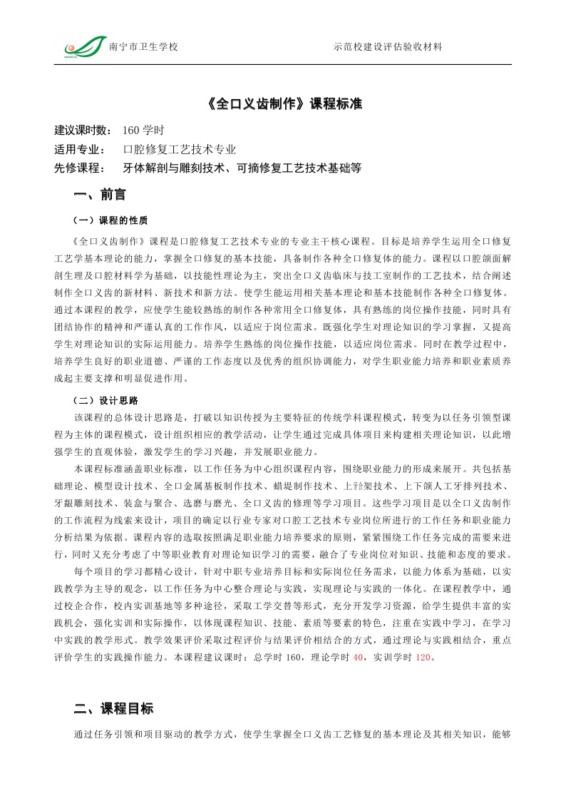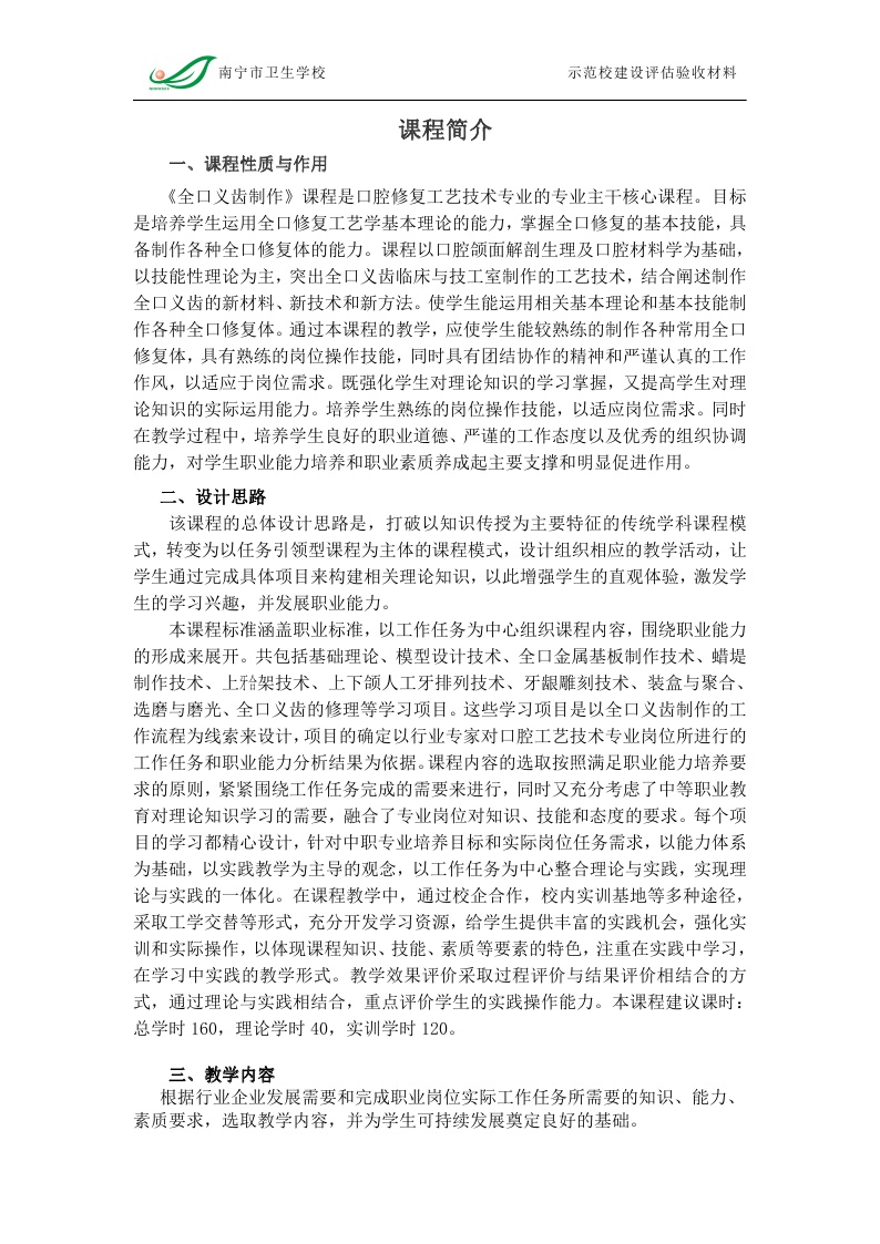 全口义齿工艺技术课程标准