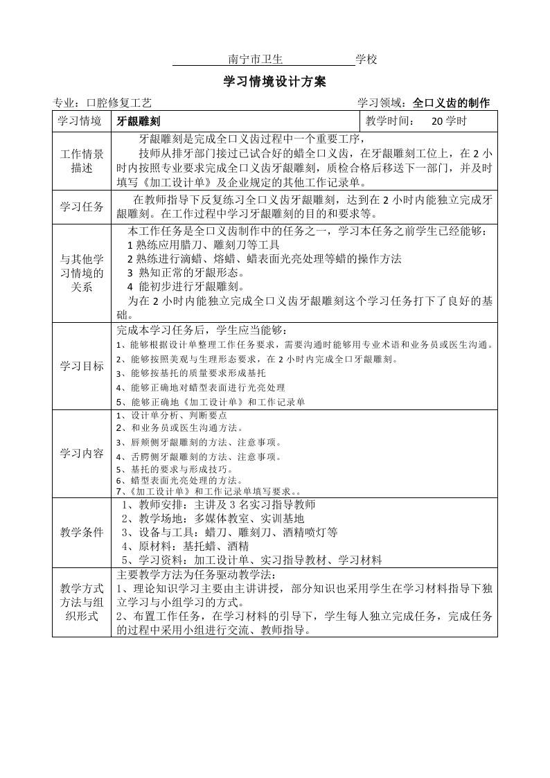 学习情境设计方案(牙龈雕刻)