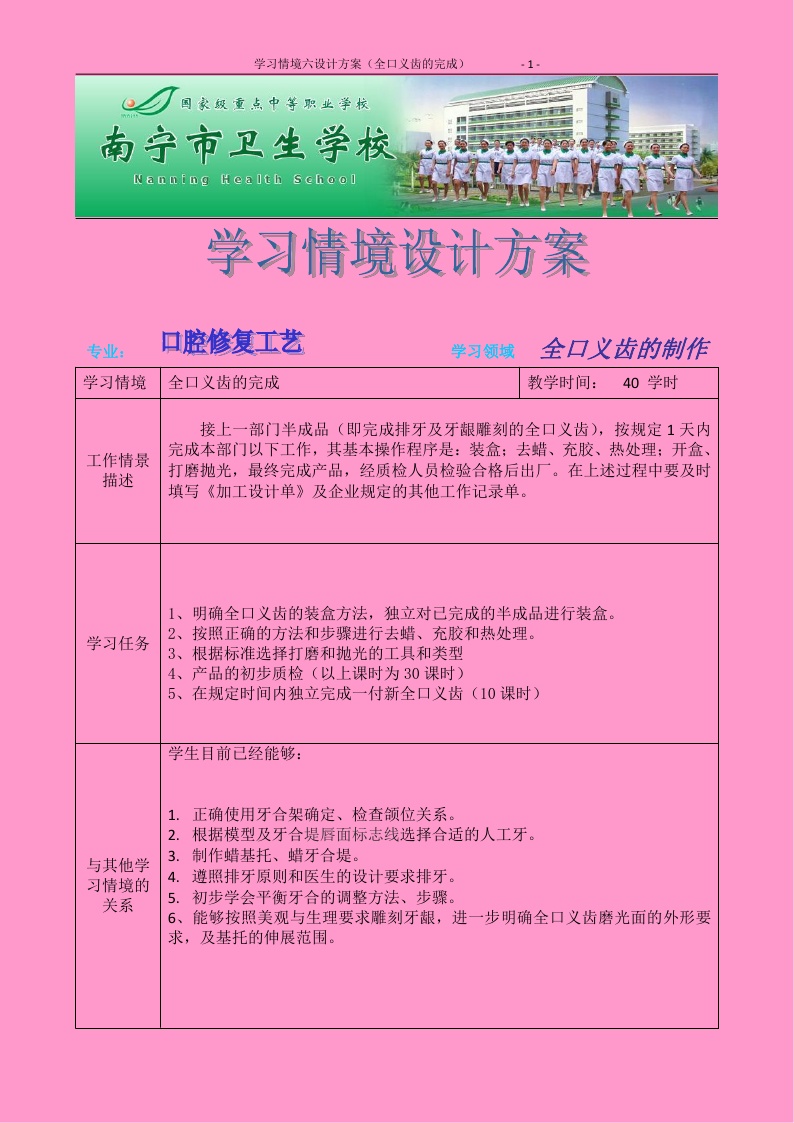 学习情境设计方案(全口的完成)