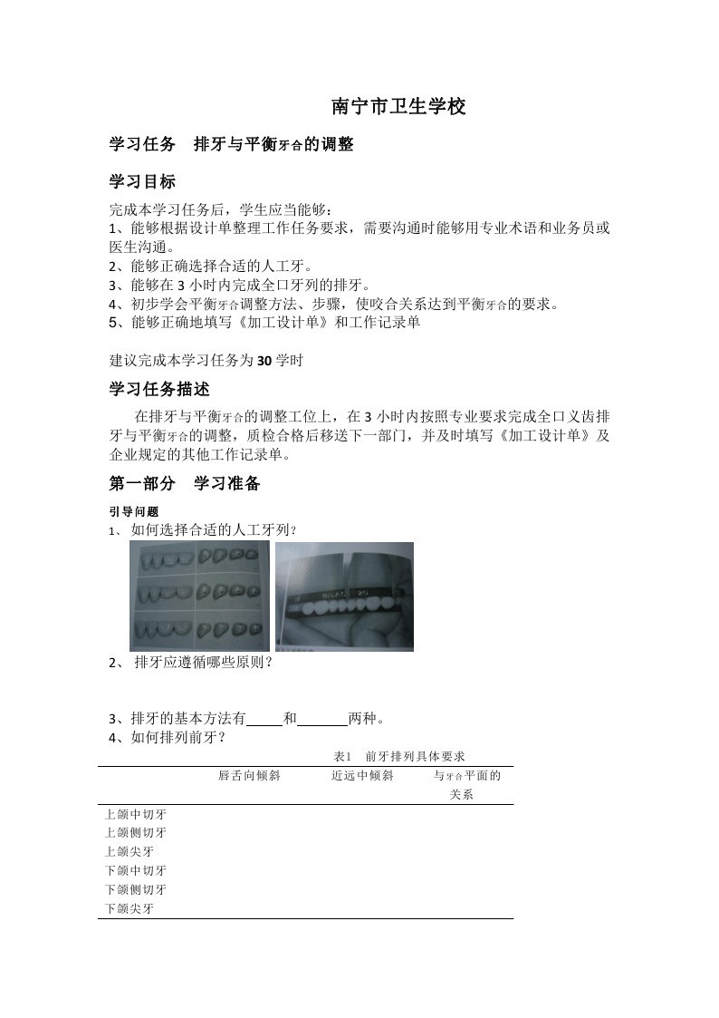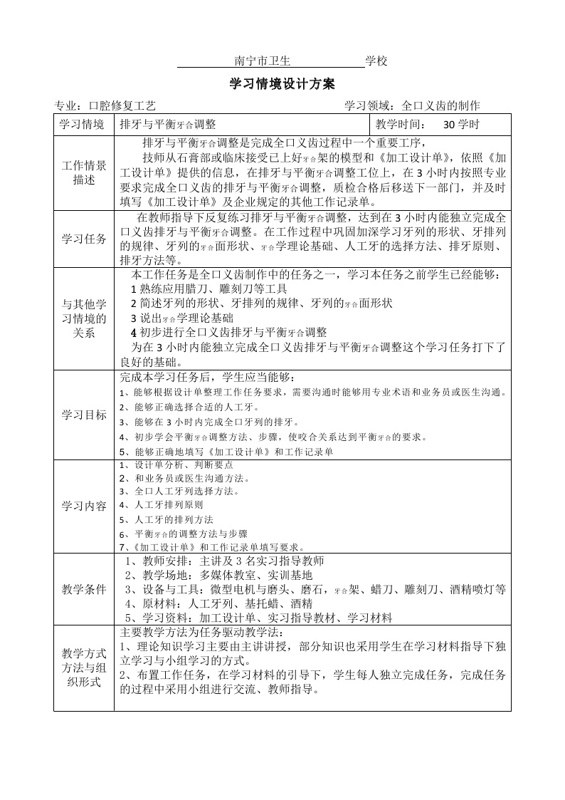 学习情境设计方案(排牙与平衡牙合的调整)