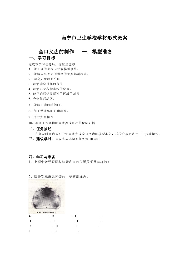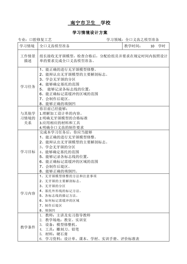 学习情境设计方案1:全口义齿模型准备