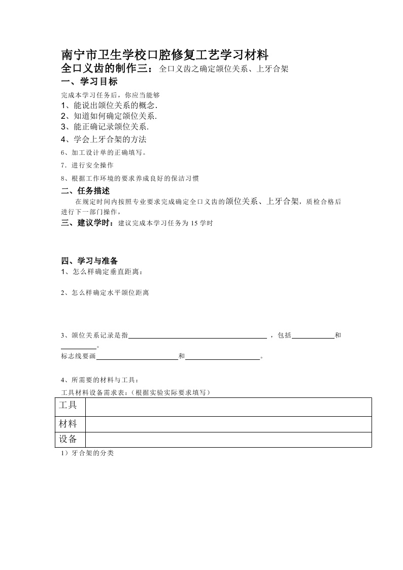 学习材料:全口义齿之确定颌位关系、上牙合架