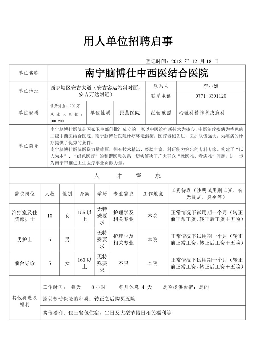 南宁百汇吉便民健康连锁诊所有限公司招聘