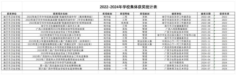 南宁市卫生学校2024年度获奖情况统计