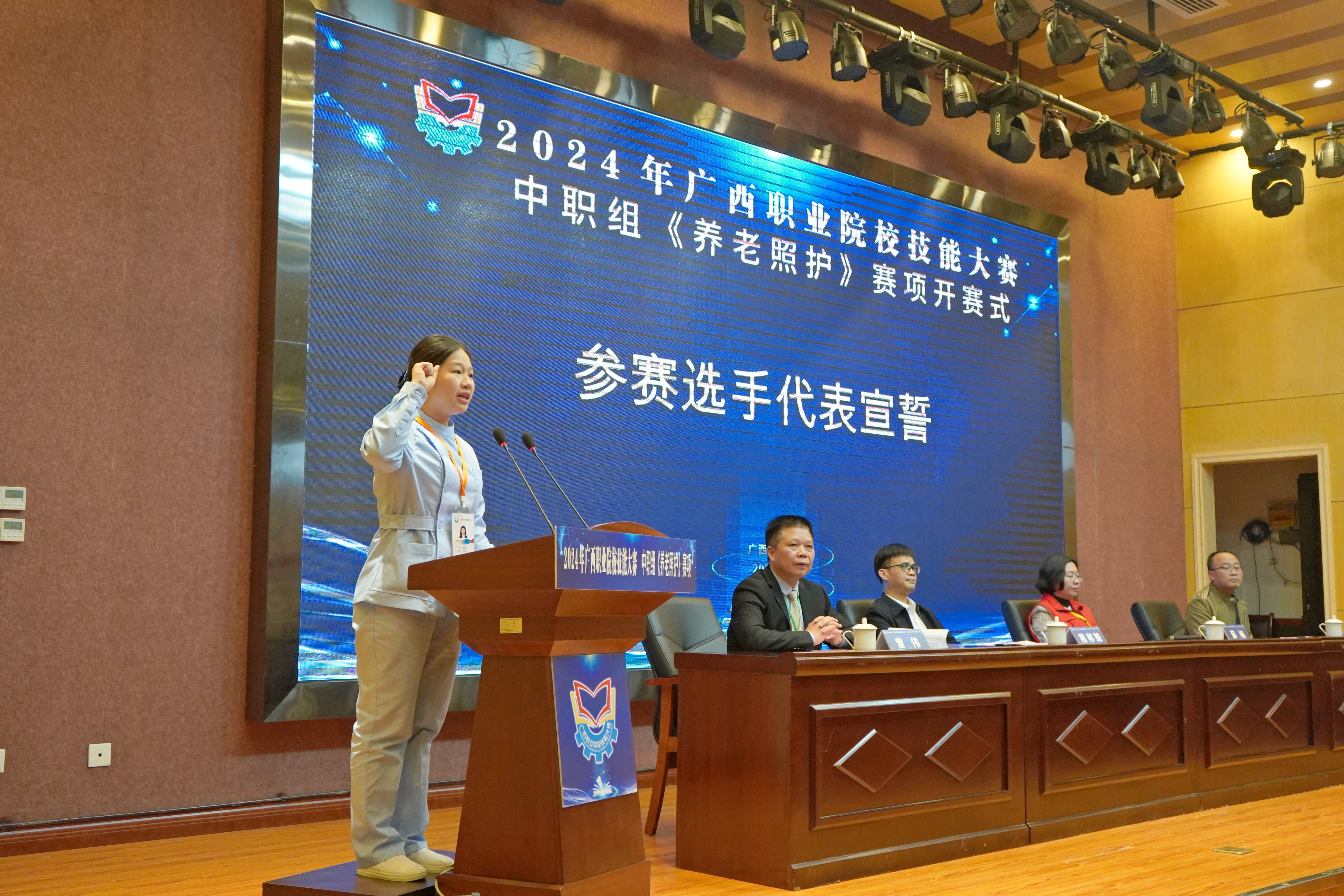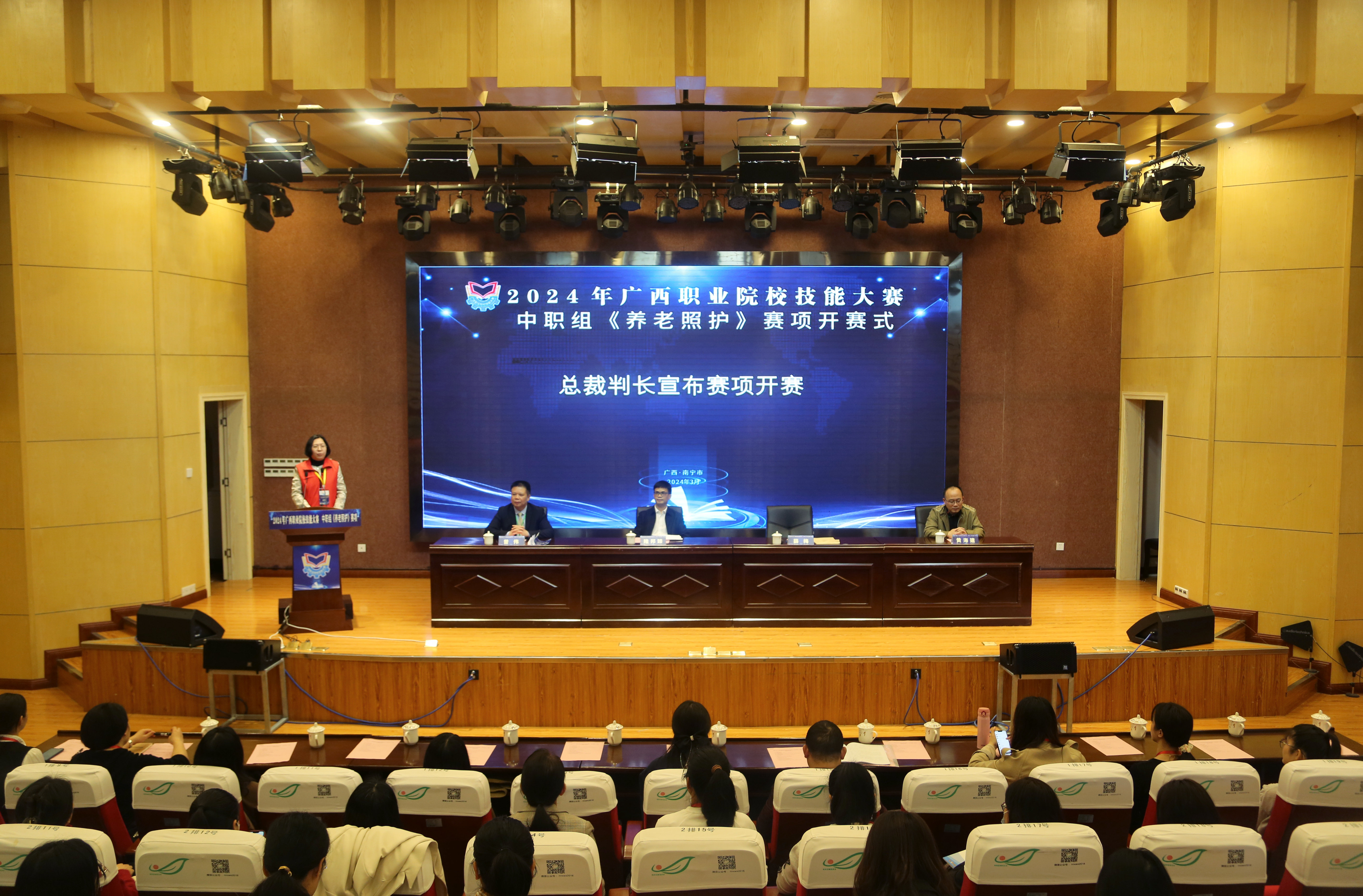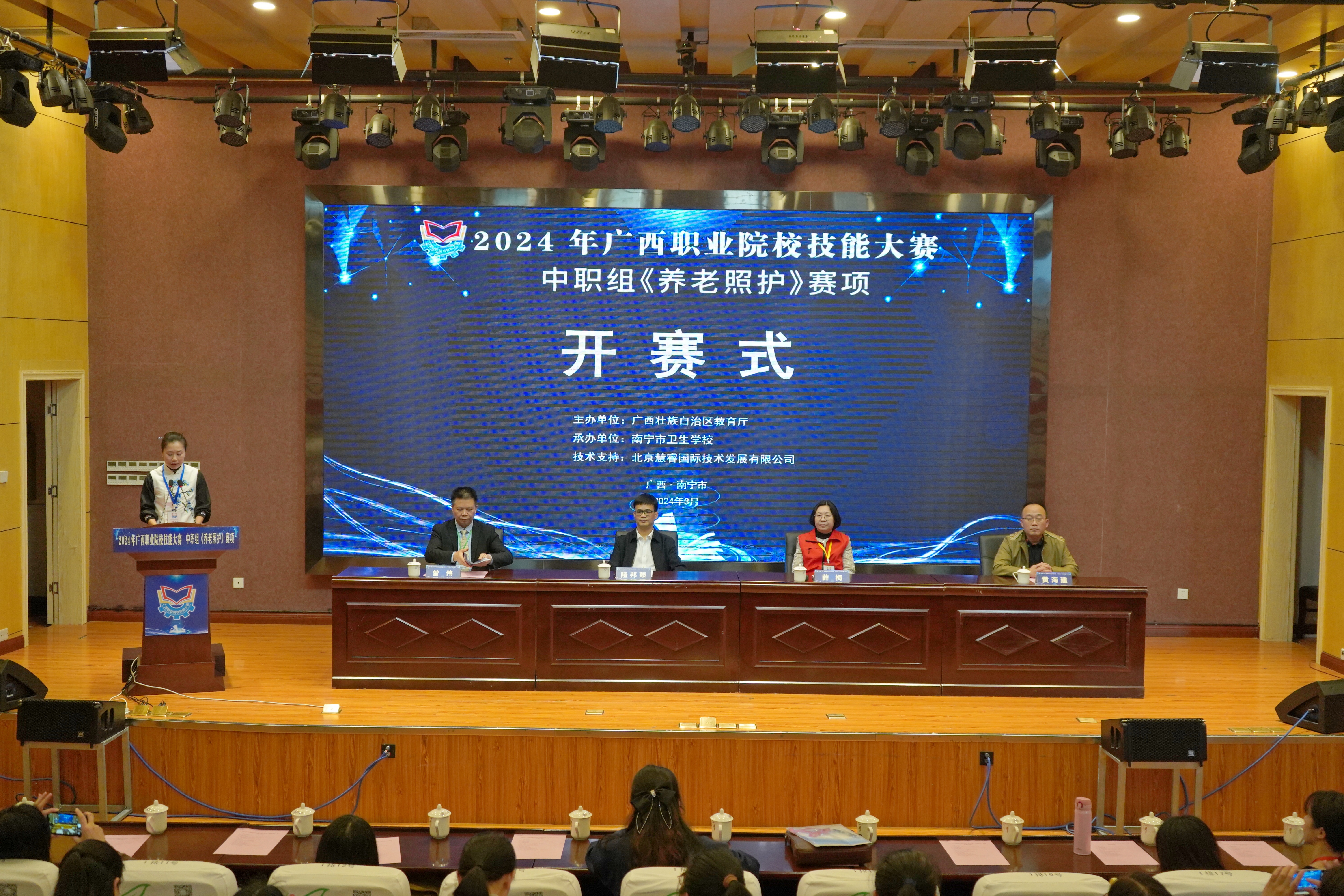 3月5日,由自治区教育厅主办、南宁市卫生学校承办的2024年广西职业院校技能大赛中职组《养老照护》赛项在南宁市卫生学校相思湖校区如期开幕。来自全区各地中职学校的14个代表队共28名选手齐聚邕城开展技能切磋。