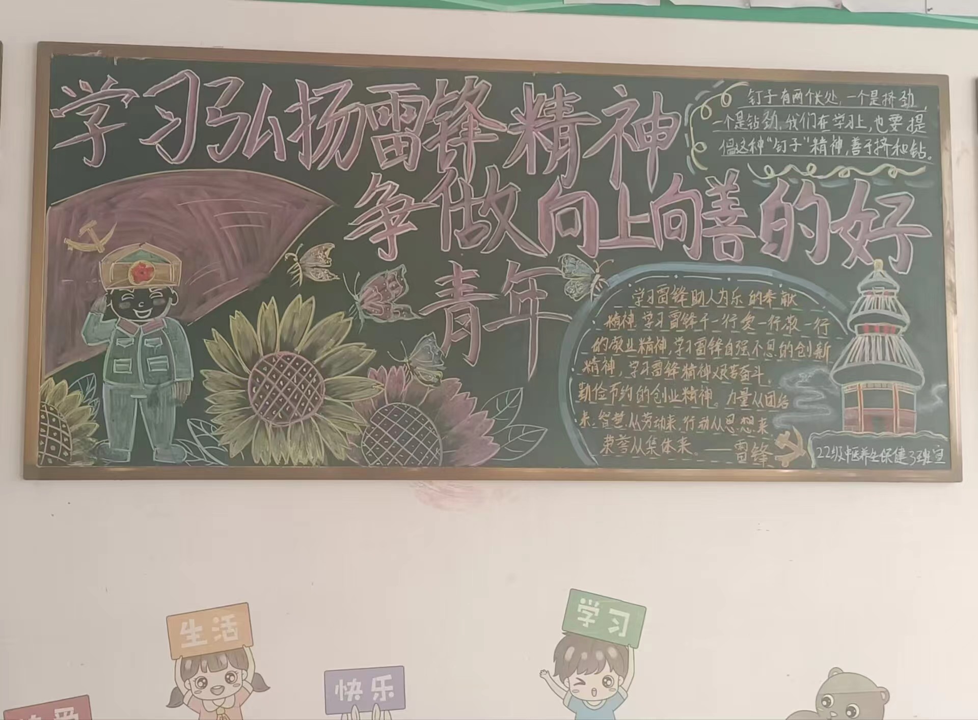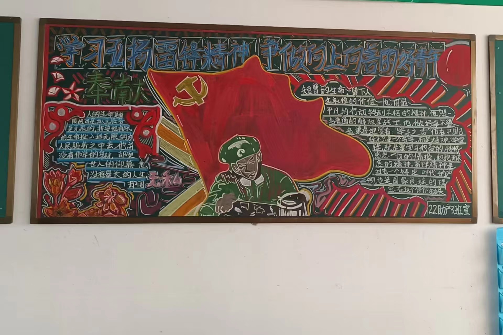 除此之外,学校团委还开展了“雷锋就在身边”稿件征集活动和“学雷锋”为主题的黑板报评选活动,同学们通过网上查阅资料,了解雷锋事迹和雷锋精神的内涵,把所感所悟以文字和图画的形式展示。