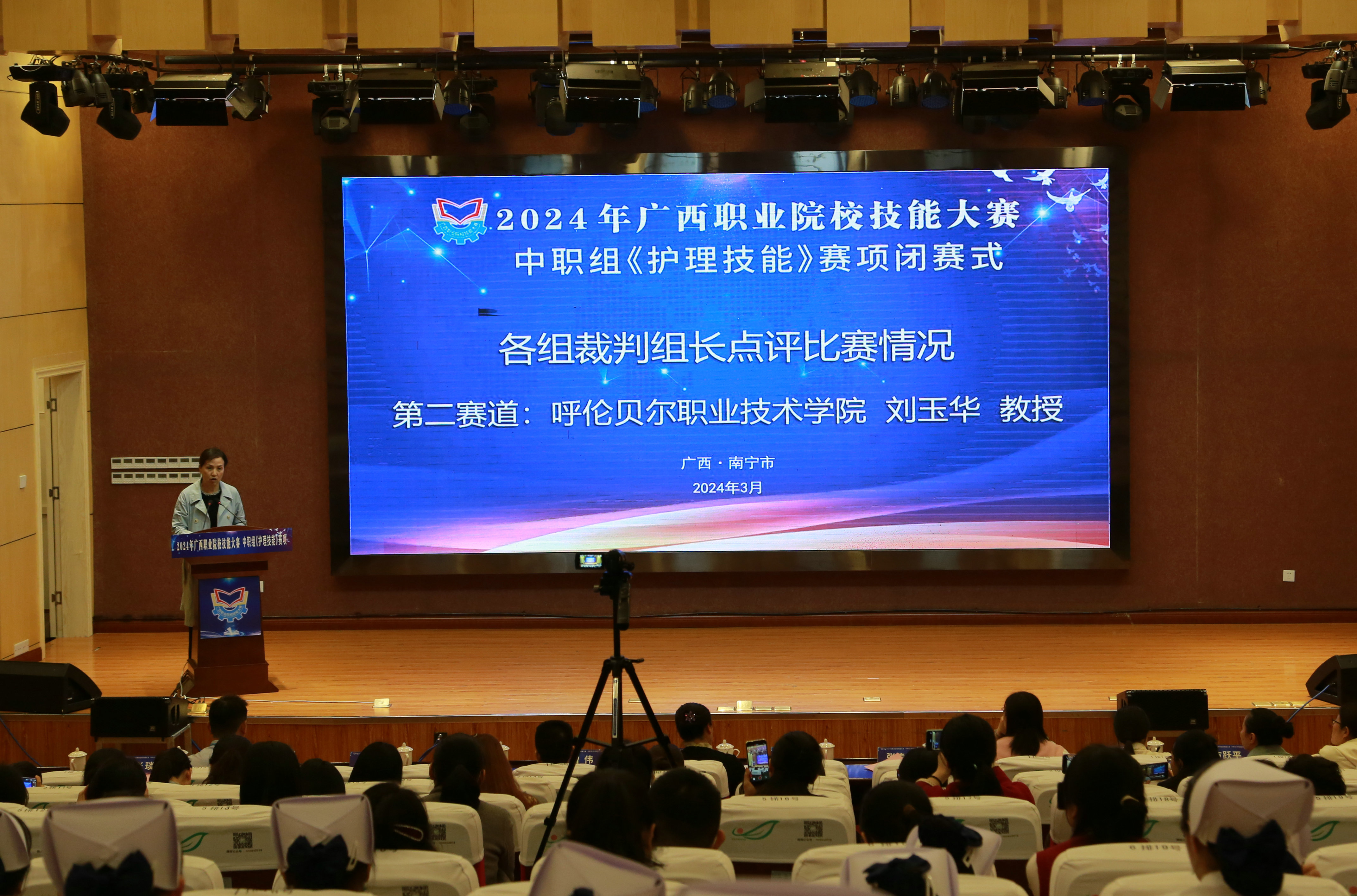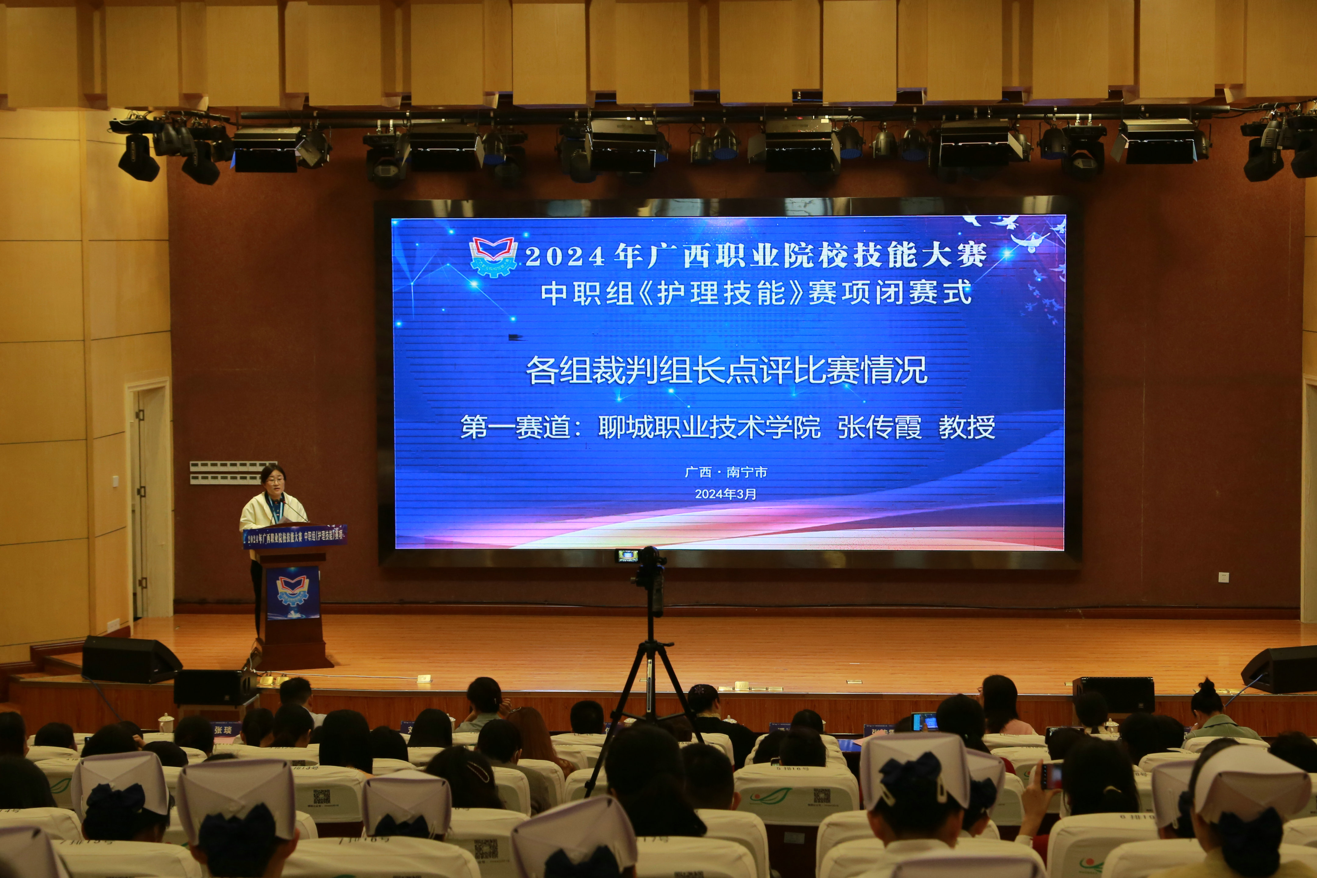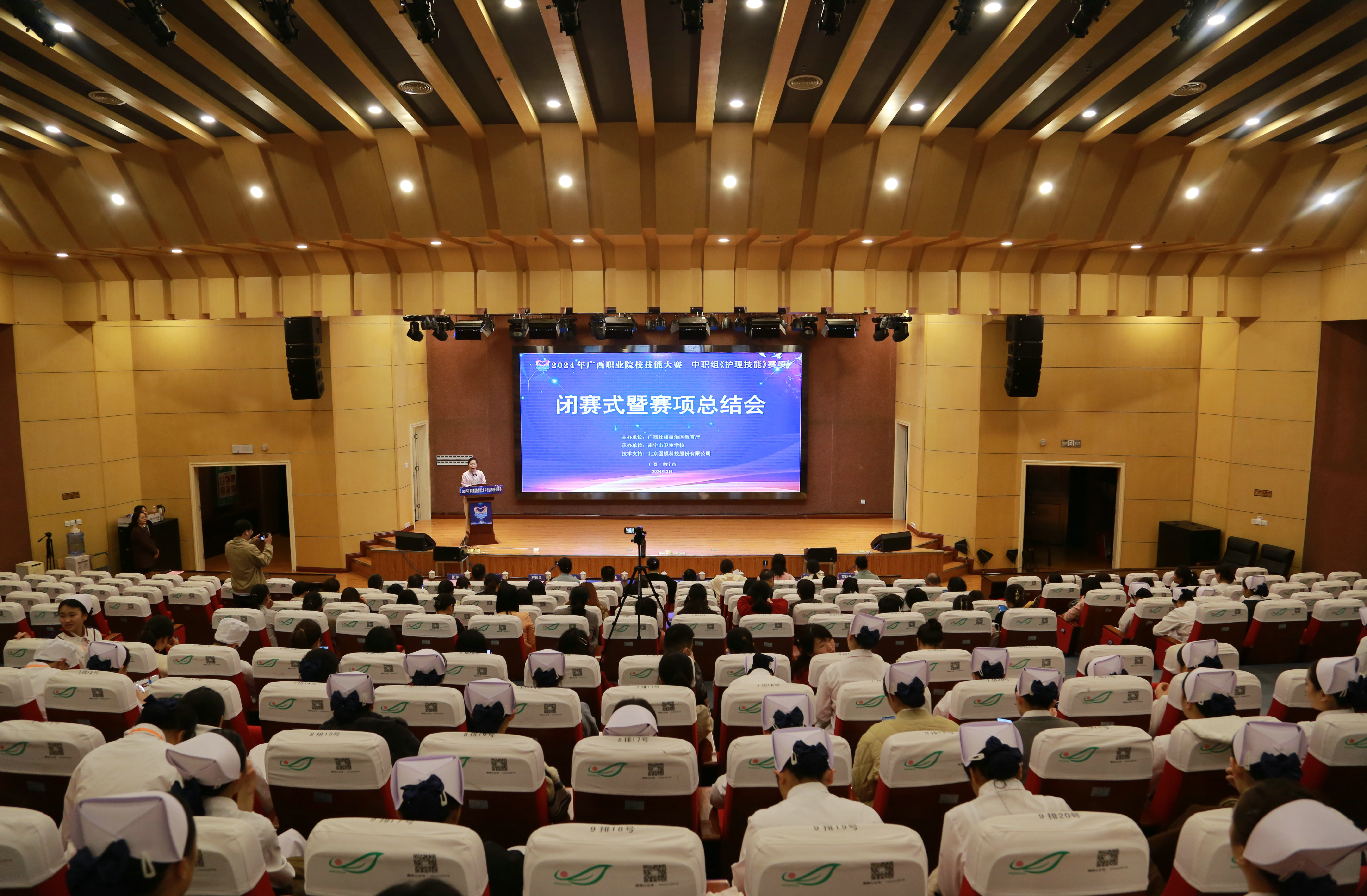 3月19日,2024年广西职业院校技能大赛中职组《护理技能》赛项在南宁市卫生学校相思湖校区落下帷幕。学校校长曾伟、全体裁判、参赛选手、学校领队及指导教师参加闭幕式。闭幕式由学校副校长赵玲莉主持。