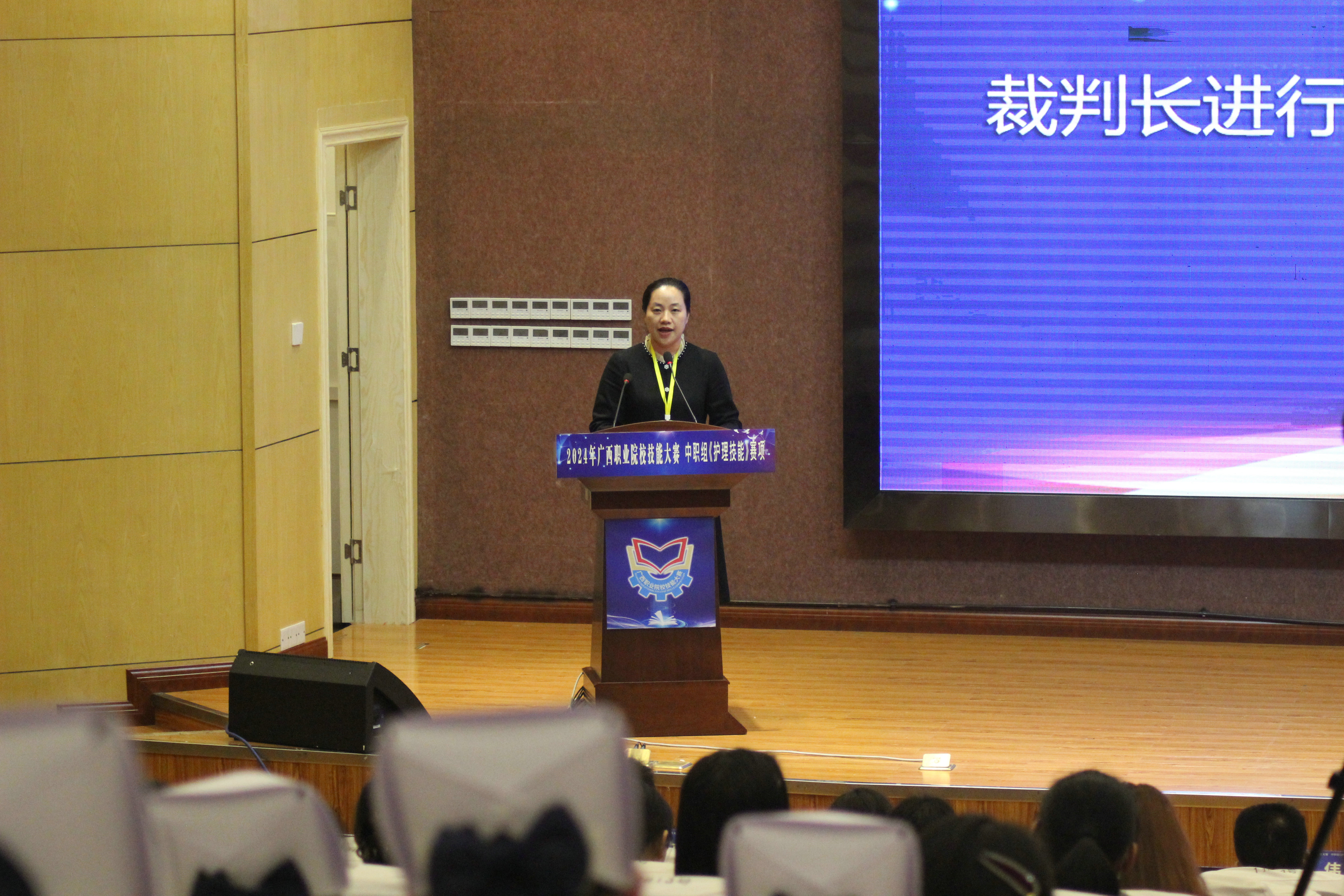 闭幕式上,各裁判组组长就各个赛项进行点评,裁判长蒋争艳作赛事总结。她表示,本次大赛各赛项内容做到了知识与技能融合、技能与岗位融合、技能与思政元素融合,赛项的举办为广大护理专业人才搭建了一个展现精湛技能、施展才华的平台,是实现普职融通、产教融合、加强职业教育的重要举措,希望各参赛院校以赛促教、以赛促学、以赛促改、以赛促建,提升学生的个人职业素养和护理照护的能力,选拔、培养和储备优秀的护理技术技能人才。