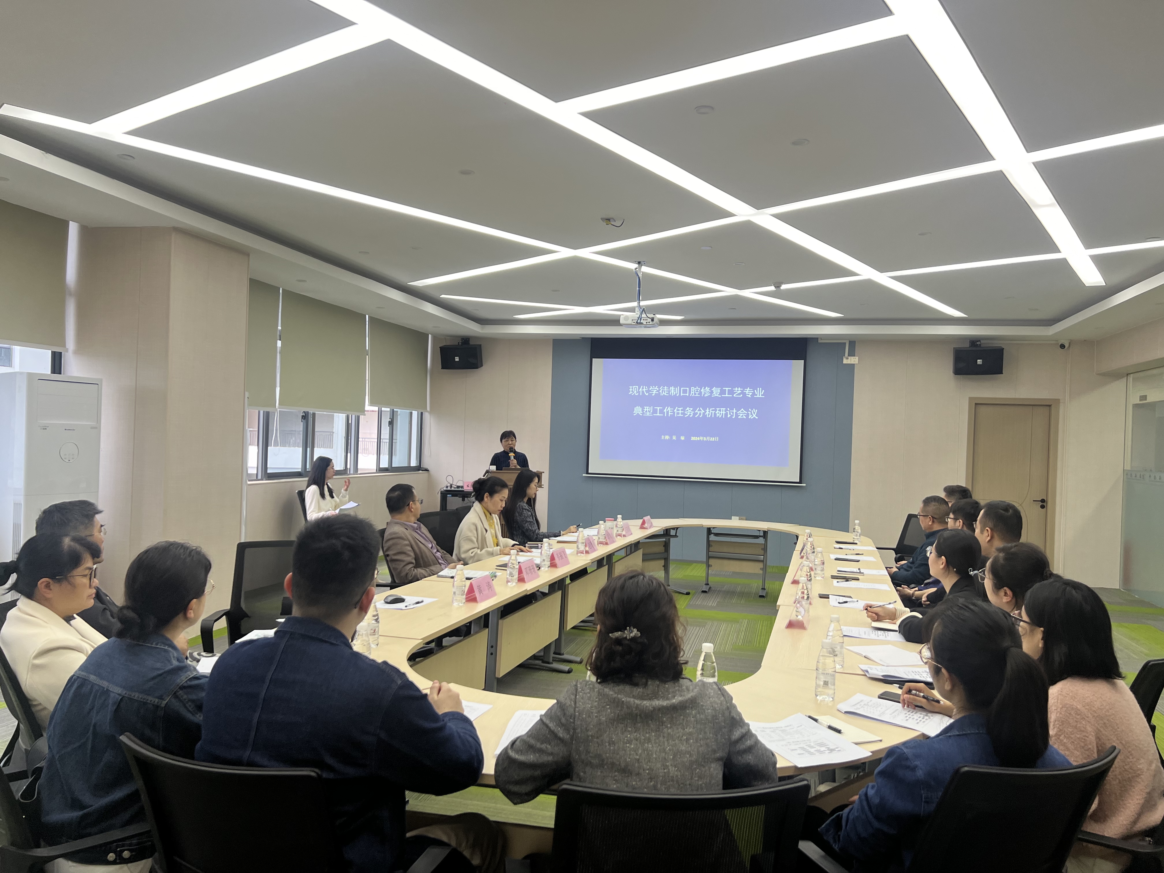 通过前期调研成果分析企业对口腔修复工艺专业群相关人才的需求岗位以及学校毕业生的主要就业岗位,专家们运用“二维四步五解”职业能力分析方法梳理出数字化义齿设计、义齿制作、义齿营销等岗位,就重要岗位所需的职业能力展开分组研讨,校企业专家共同分析了岗位的具体工作任务和所应具备的职业能力。最后,会议汇总了各组的讨论成果,提炼出了10项口腔修复工艺专业的典型工作任务。