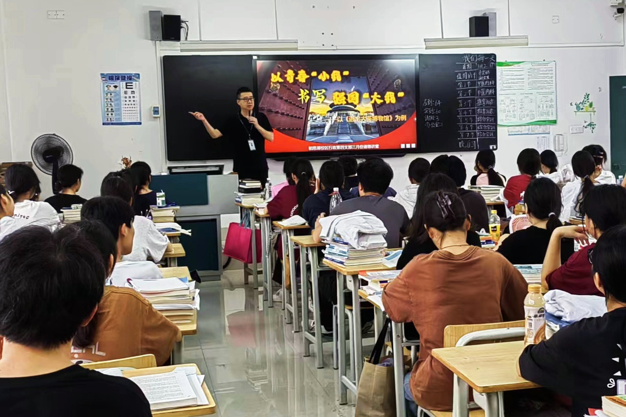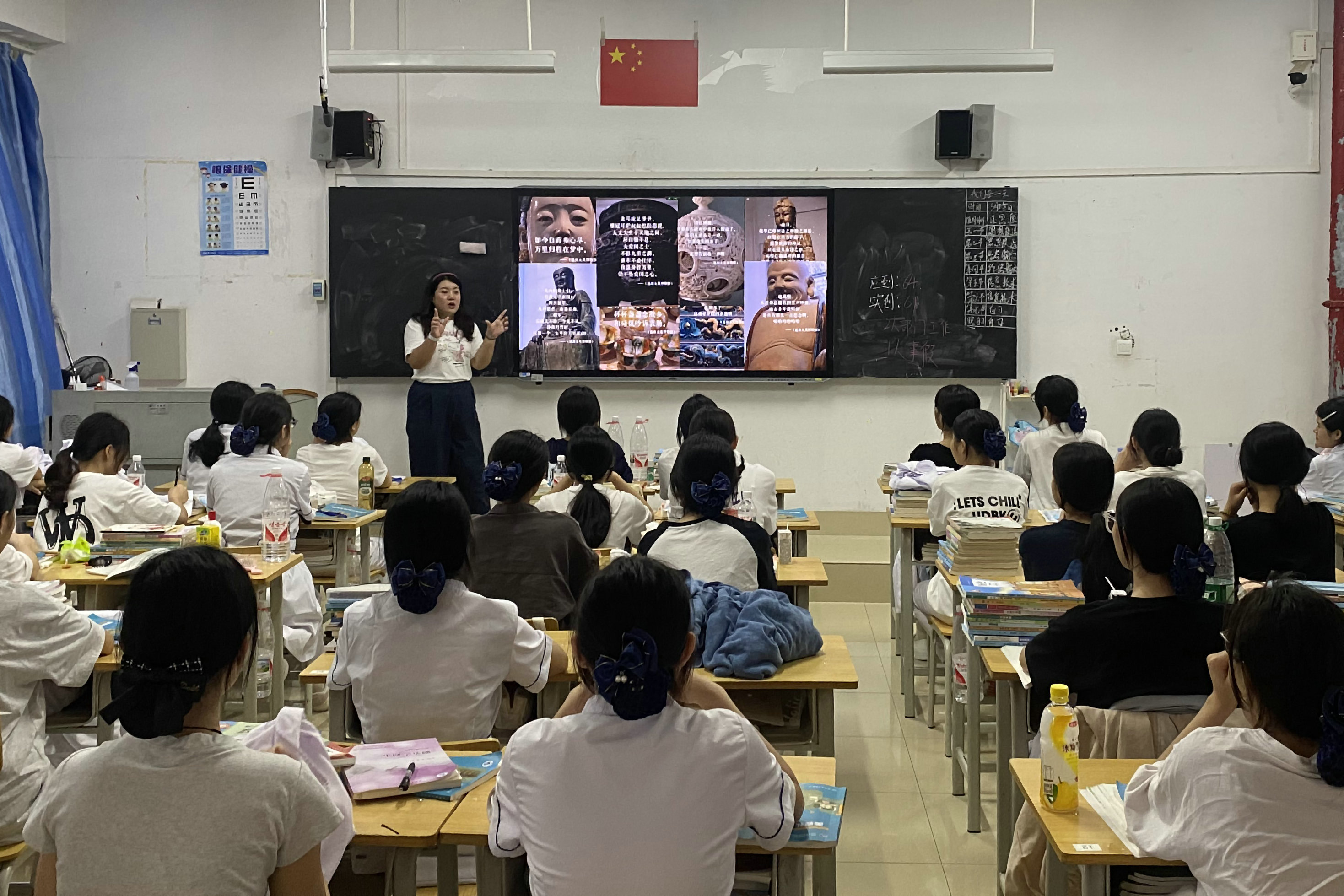 “是盏,是中华缠枝纹薄胎玉壶!”本次道德讲堂以火爆出圈短剧《逃出大英博物馆》为例子进行导入。通过观看短片,支部党员教师们介绍了事件背景并带领同学们结合语文课、历史课所学,回顾了那段被侵略、被掠夺的悲痛过往。在诵经典环节中,党员教师们与学生一同有感情地朗诵《少年强,则国强》。通过词中语言,牢记“落后就要挨打”的深刻教训,谨记唯有自身强大,方能立足于世界民族之林的道理。