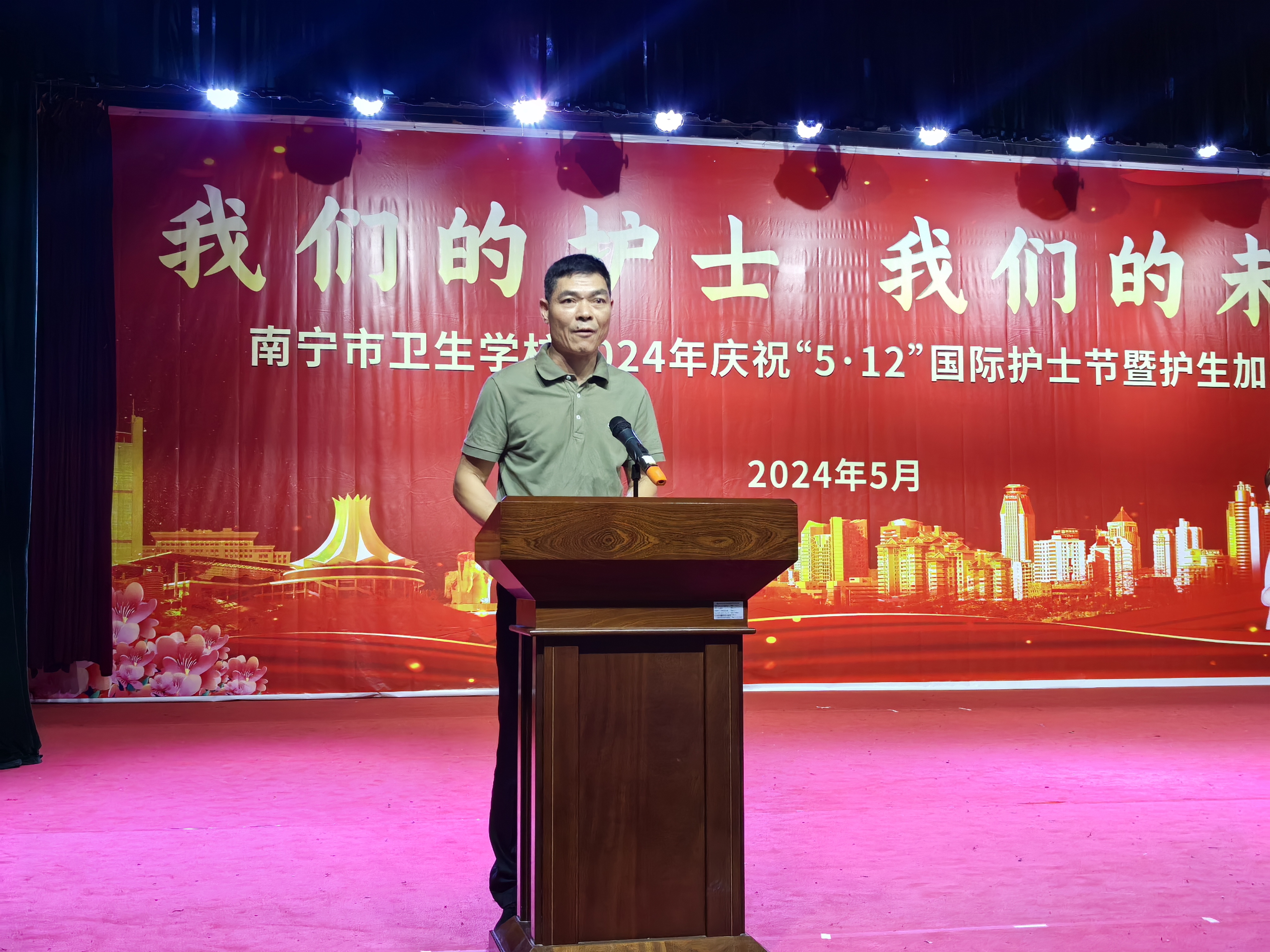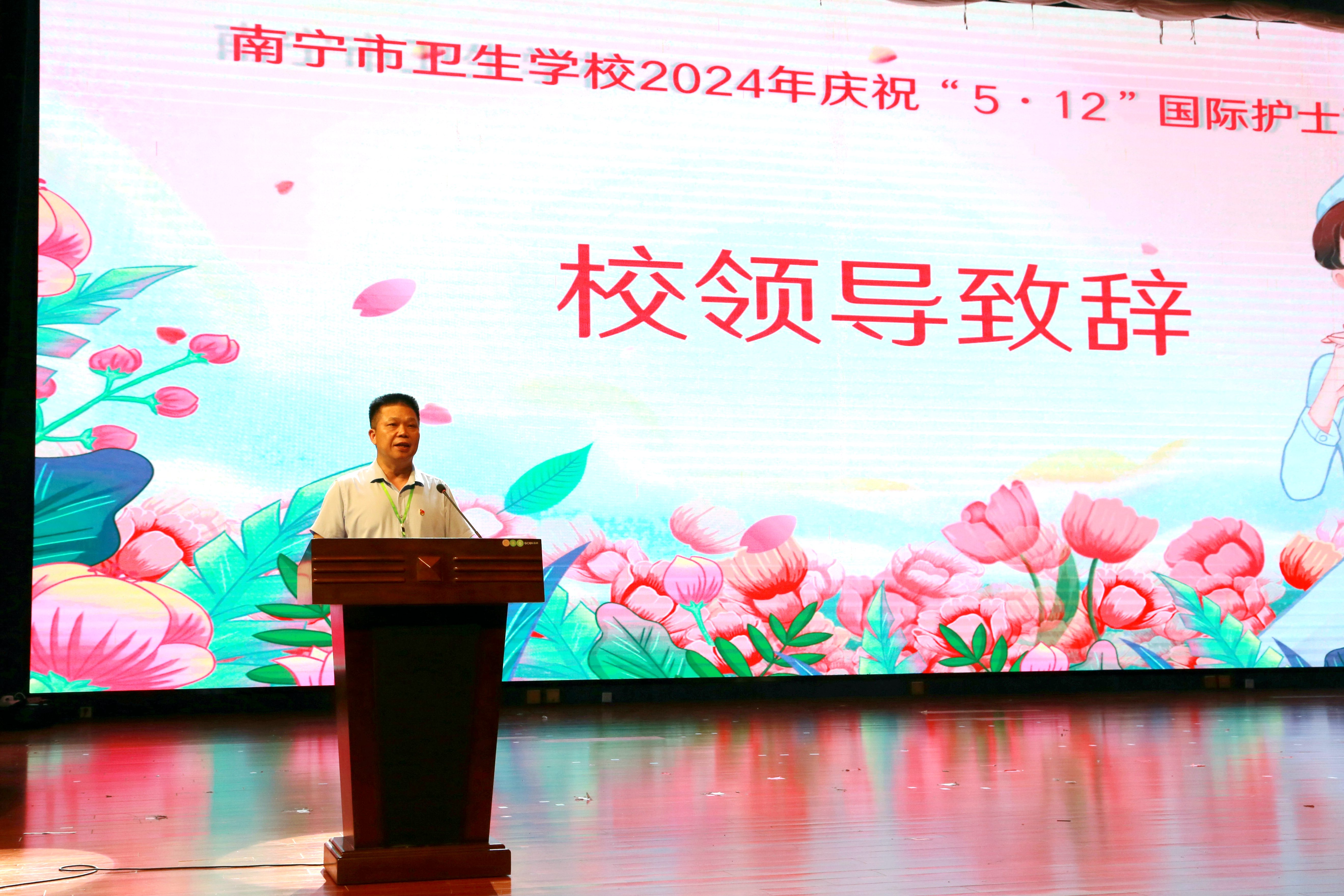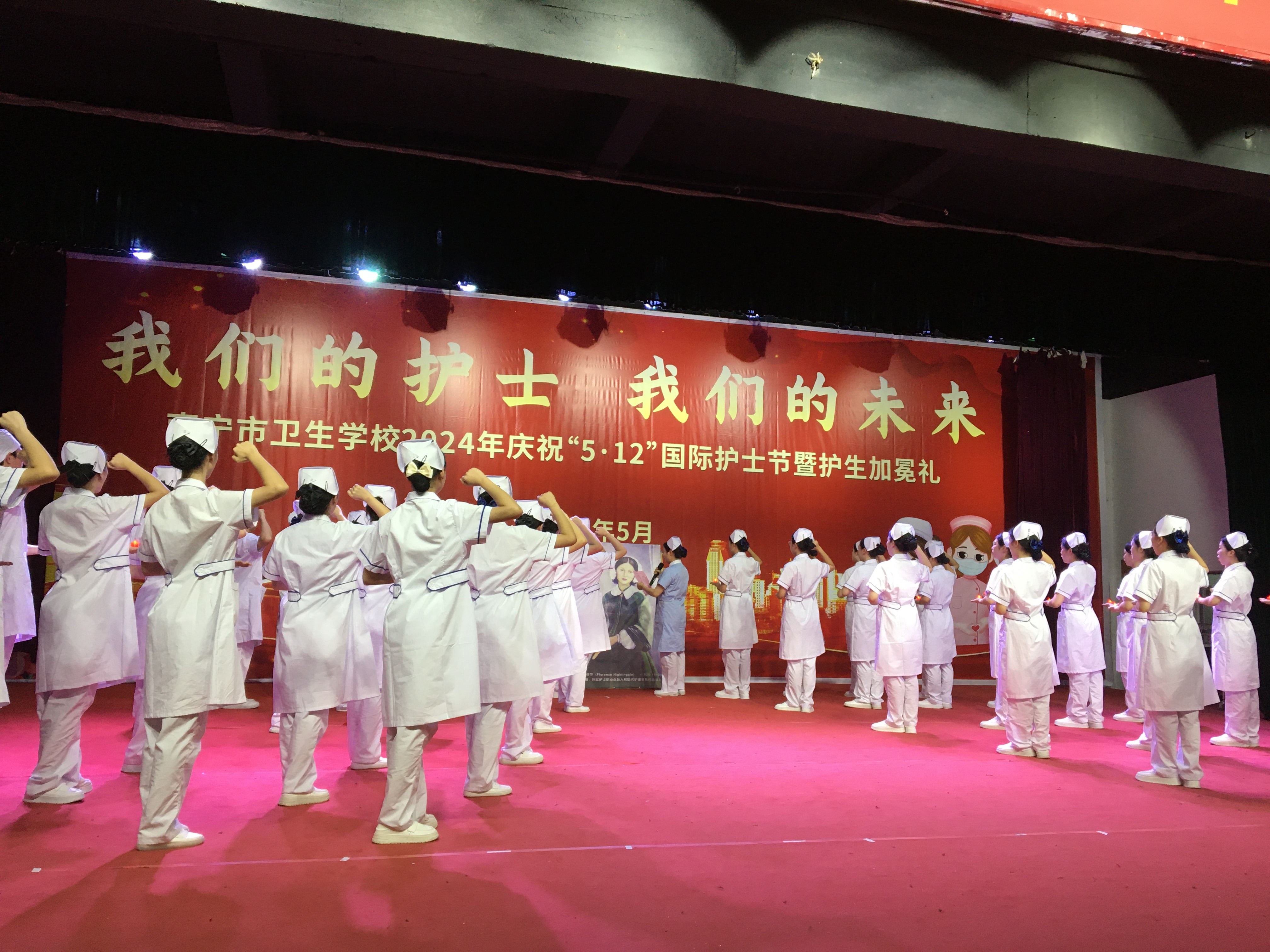 花开五月,携一缕浅夏的芬芳,凝一脂冰清玉洁的梦想。在这个芬芳的五月,又迎来了第113个国际护士节,为继承和弘扬南丁格尔不畏艰险、甘于奉献、救死扶伤、勇于献身的人道主义精神,增强护理专业学生的责任感、使命感、荣誉感,南宁市卫生学校于5月14日分别在两校区举行了5·12国际护士节活动。本次活动邀请了第45届南丁格尔奖、国家白求恩奖章、全国五一劳动奖章获得者、全国“最美奋斗者”南宁市第四人民医院艾滋病科护士长杜丽群,还邀请南宁市第二、四、五、六、八人民医院及学校附属医院(南宁市第九人民医院)的护理部主任、副主任等护理专家出席活动,学校相关领导、中层干部、护理教师及2023级护理专业学生参加本次活动。