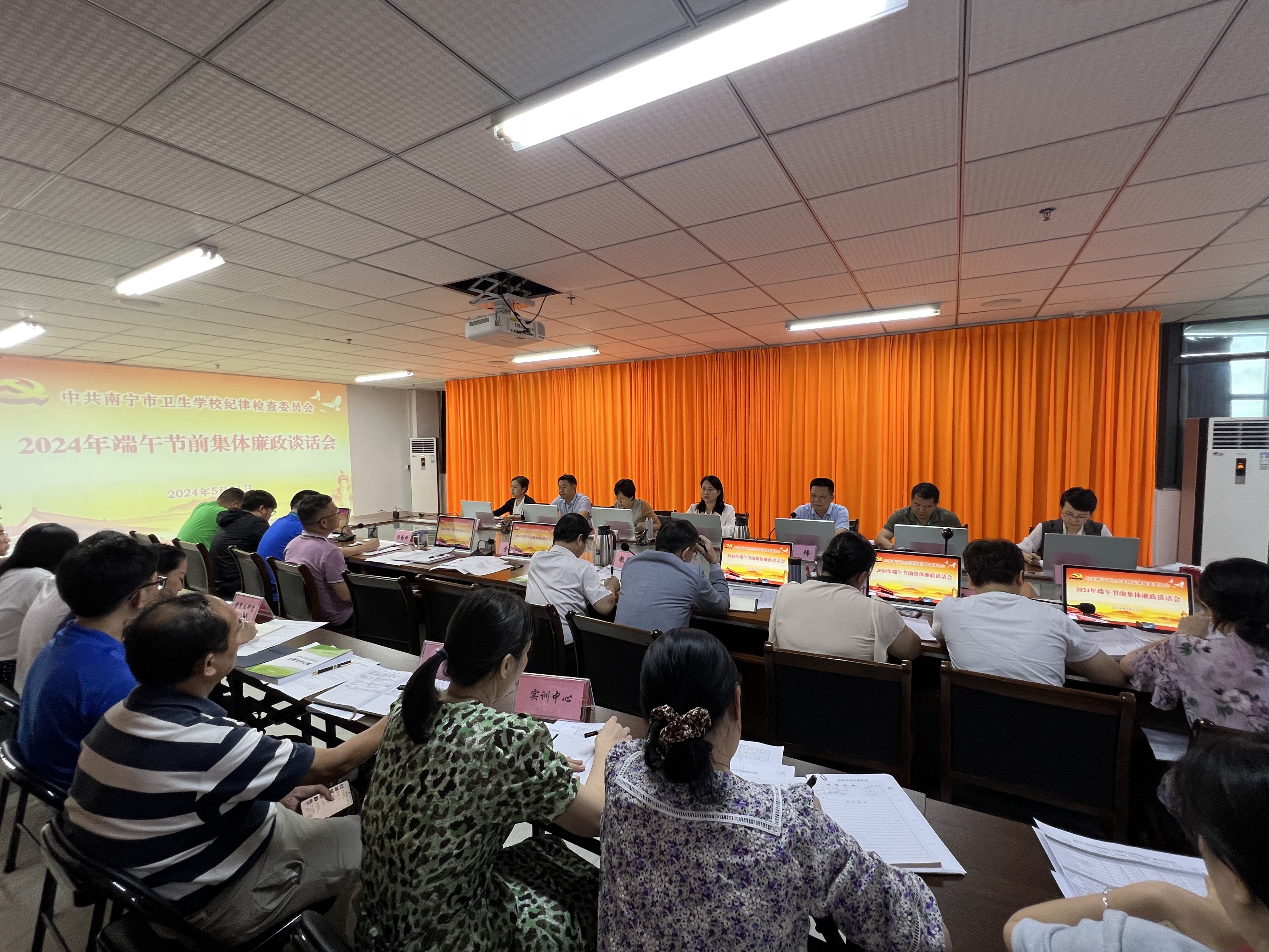 为进一步加强学校党风廉政建设,提高领导干部廉洁自律意识,营造风清气正的校园氛围,2024年5月31日,南宁市卫生学校通过视频会议系统在两校区开展端午节前全体中层以上领导干部集体廉政谈话。