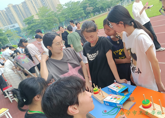 为提高学生心理健康素养,促进学生身心健康发展,营造一个人人重视心理健康,人人爱护心理健康的良好氛围,推动学生心理健康工作提质增效,6月13日下午,南宁市卫生学校心理健康中心组织开展了“说点‘心理’话 相伴共成长”心理健康游园。