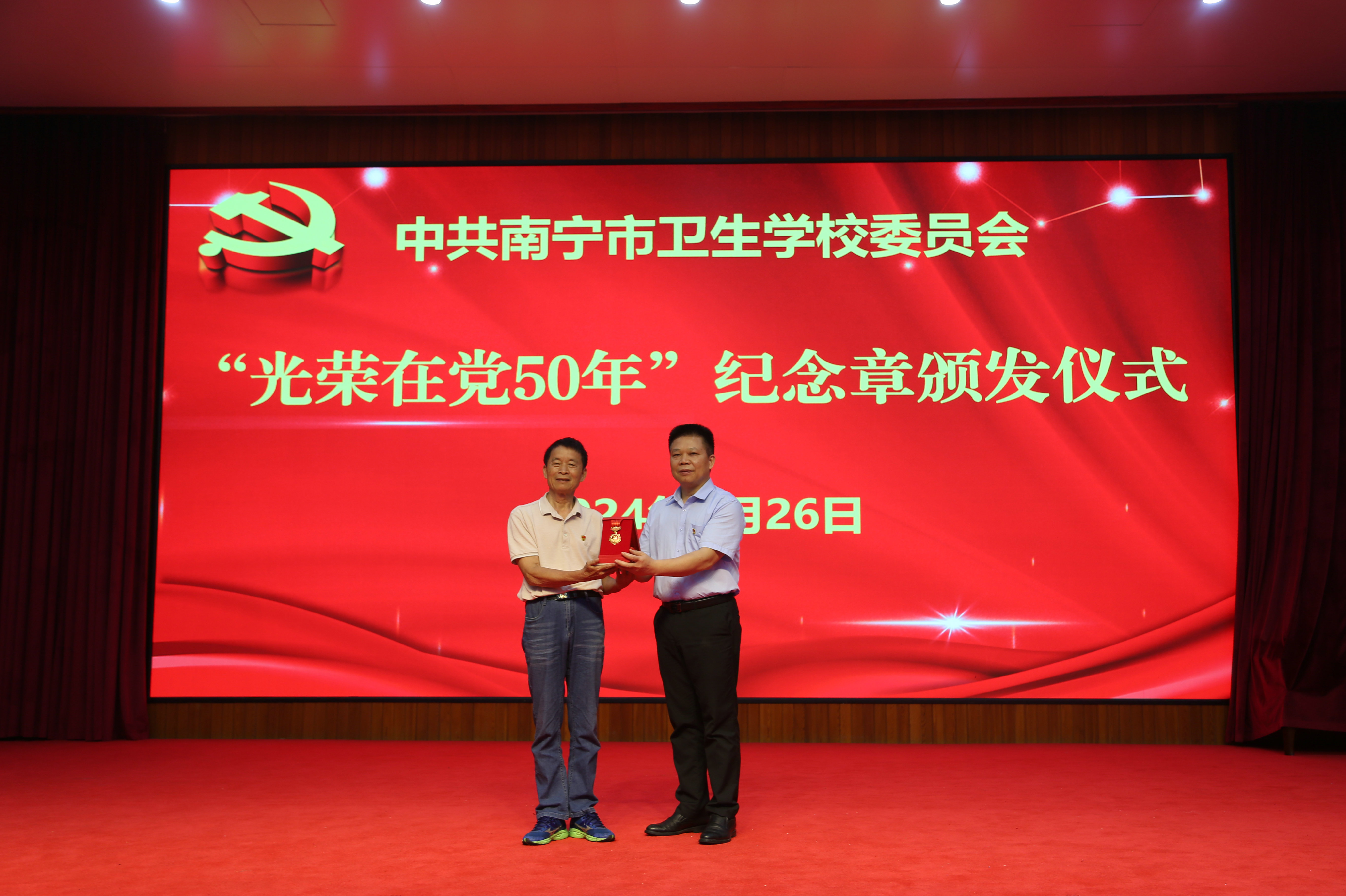 活动中,学校党委副书记、校长曾伟为党龄达到五十年的党员颁发了“光荣在党50年”纪念章,希望党员们继续发挥余热、为学校高质量发展贡献力量。