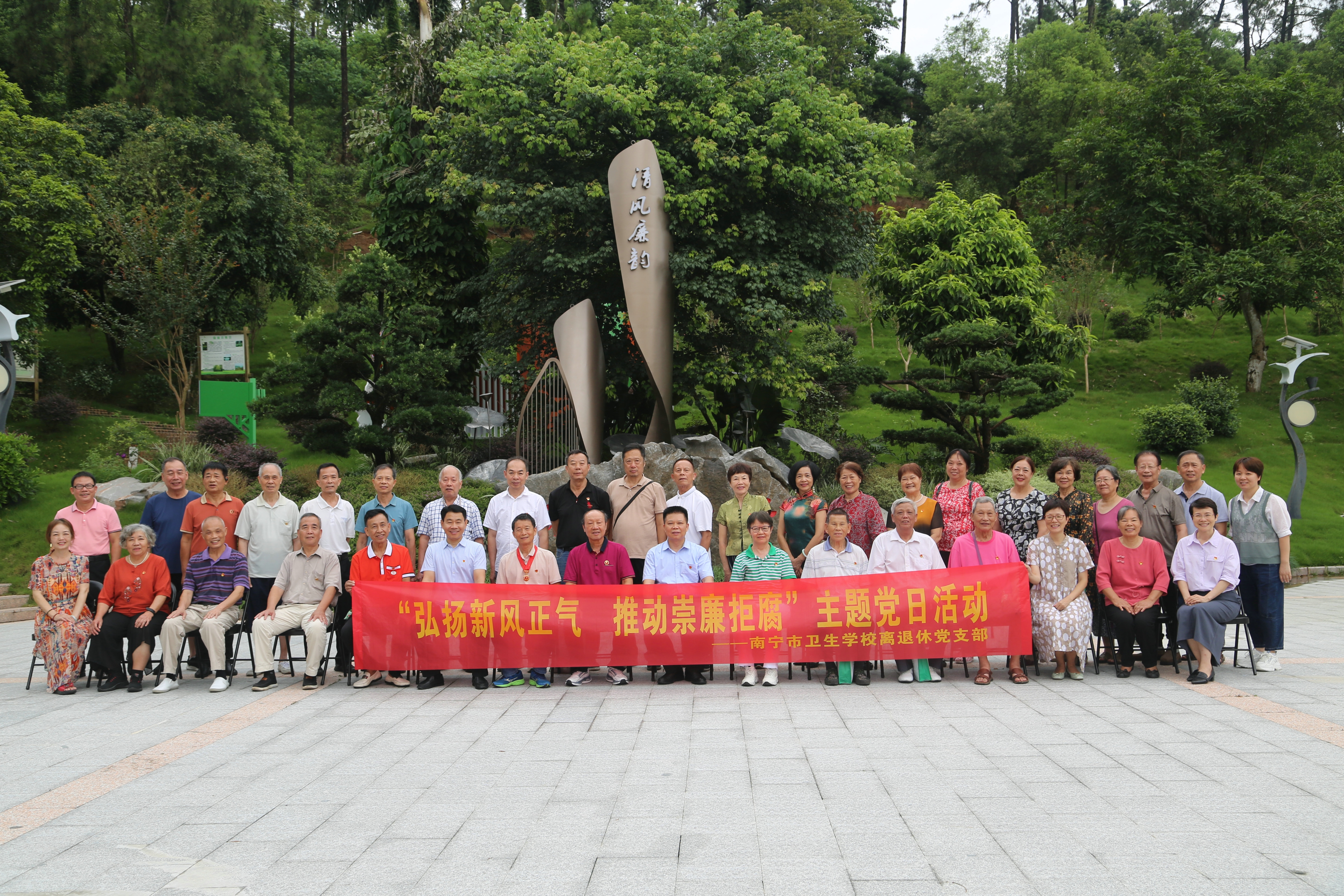 为深入推进党风廉政建设,弘扬清正廉洁新风尚,6月26日,南宁市卫生学校两校区离退休党支部开展了一场别开生面的“弘扬新风正气 推动崇廉拒腐”主题党日活动。学校党委副书记、校长曾伟,党委副书记、纪委书记方莉,副校长许茂松、卢青参加活动。