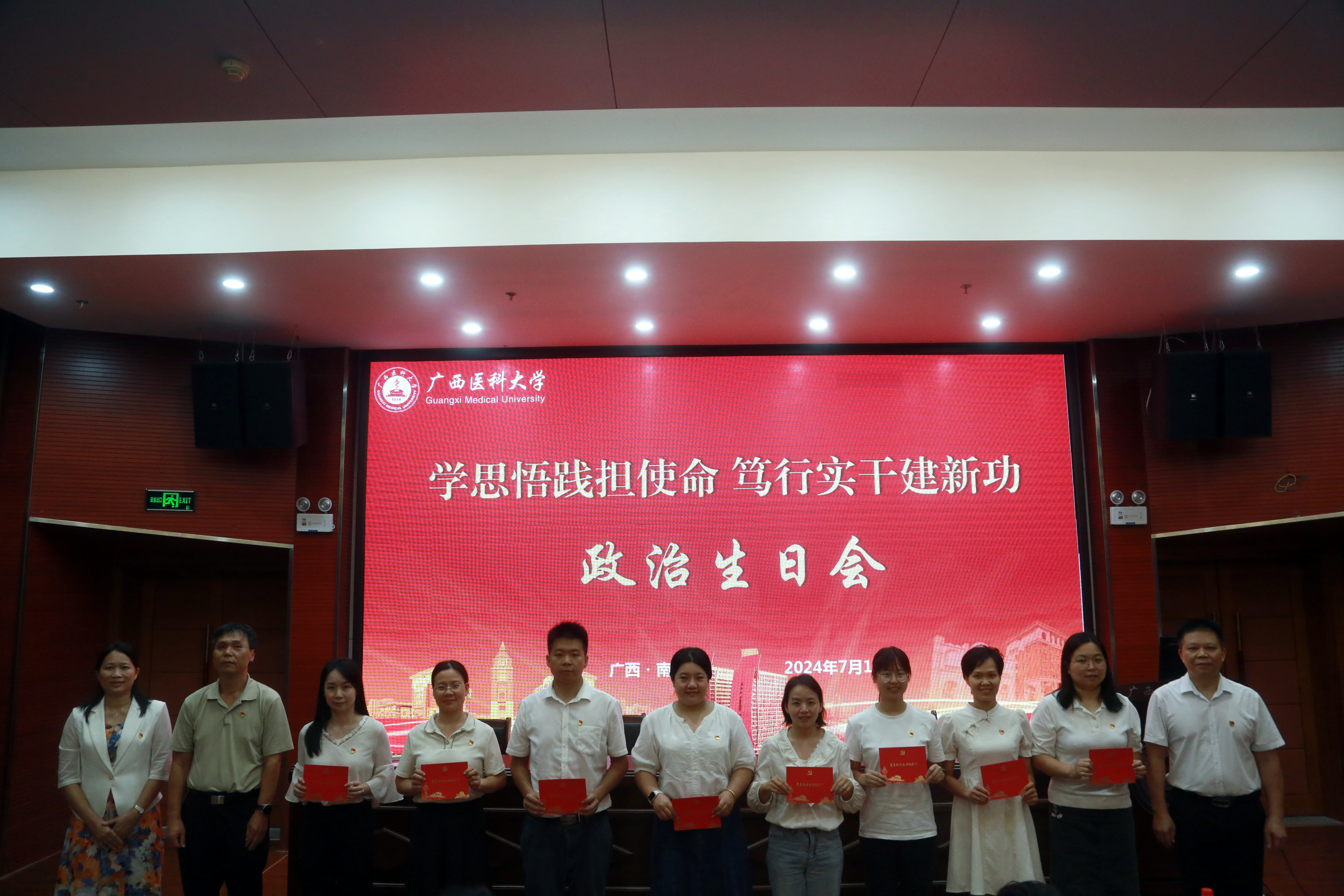 结业仪式上,市卫健委党组成员、四级调研员许明河,广西医科大学继续教育学院院长周波,学校党委书记岑玉寒,党委副书记、校长曾伟为学员颁发结业证书。当天正值“七一”建党节,在这个特殊的日子里,全体党员共度政治生日。与会领导为党员们发放“政治生日”贺卡,送上政治生日祝福。通过这种“仪式感”,搭建党组织与党员间的“连心桥”,让每位党员回望初心,铭记党员身份,不断增强党组织的向心力和凝聚力。