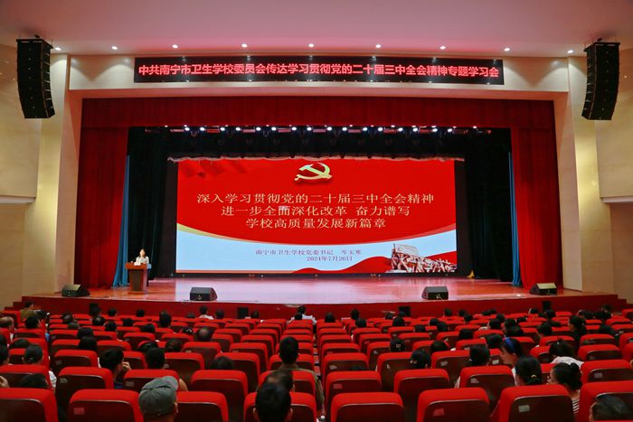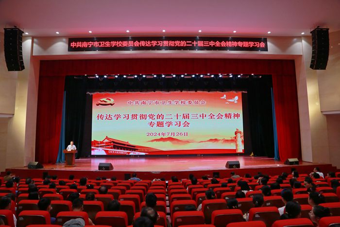 7月26日上午,中共南宁市卫生学校委员会召开传达学习贯彻党的二十届三中全会精神专题学习会,学校全体教职工参加会议。会议由学校党委副书记、校长曾伟主持。