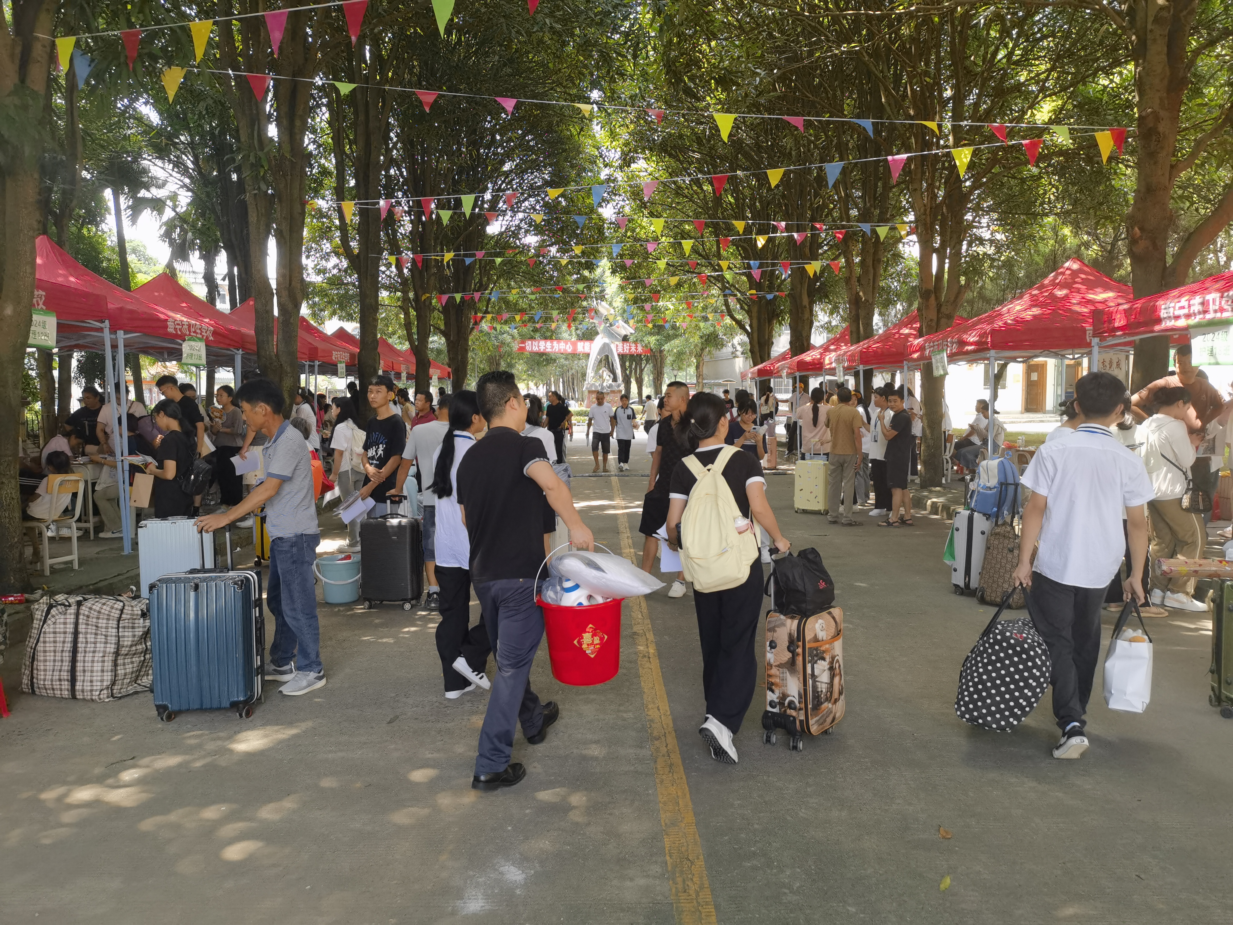 在两校区,头顶骄阳、热情饱满的迎新志愿者们穿梭忙碌的身影随处可见,他们主动为新生搬运行李,耐心地解答各种问题,引导新生顺利完成报到手续。