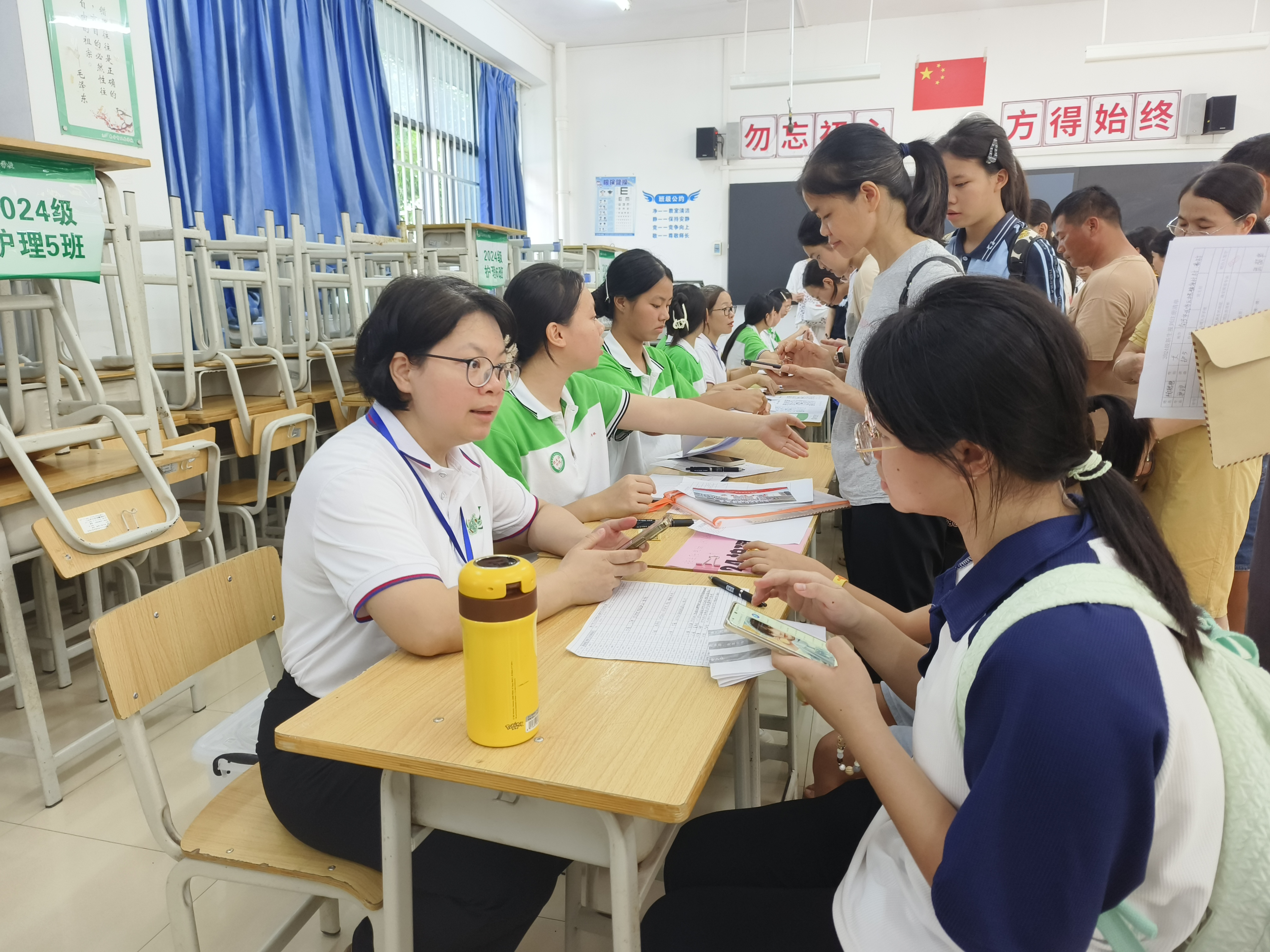 报到现场秩序井然,各项工作有条不紊进行着。老师们认真地为新生办理入学手续,仔细核对信息,确保每一位新生都能快速、准确地完成报到。同时,学校还设置了咨询处,为新生和家长提供关于专业课程、校园生活、奖助学金等方面的详细解答。