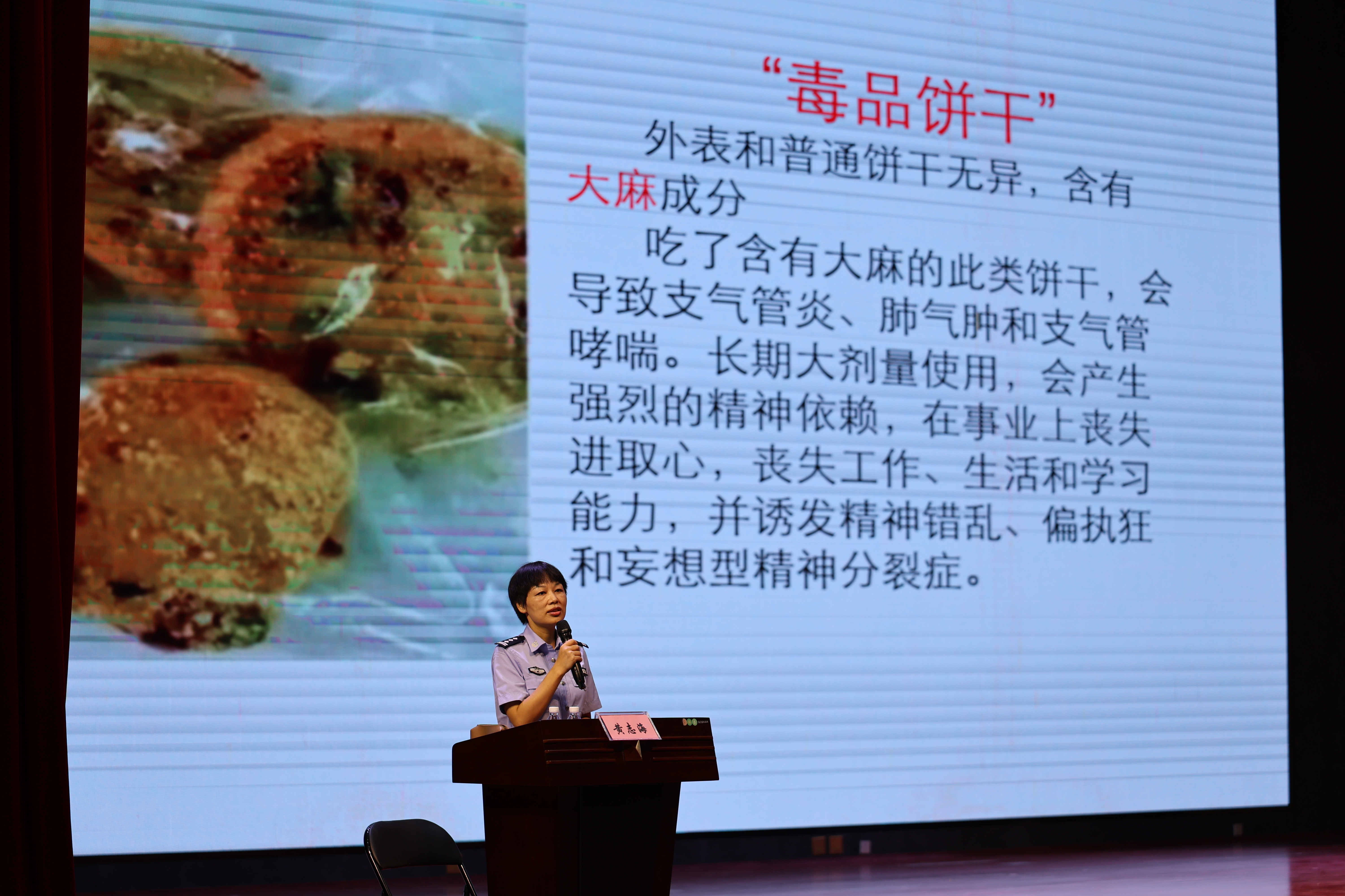 课后,黄志海警官还与师生们一起参观了仿真毒品展览区,向师生们详细介绍了如何识毒、拒毒、防毒。