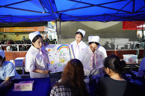 9月25日晚,在西乡塘区石埠街市,南宁市卫生学校11名师生组成志愿服务团队,参加2024年南宁市卫生健康“三下乡”暨“邕有健康”志愿服务活动,面对面为群众提供健康服务。