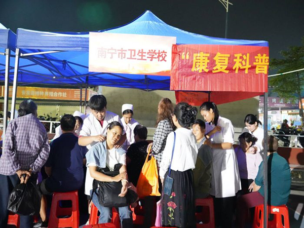 在本次活动中,南宁市卫生学校服务群众约60人。中医康复保健教研室教师、南宁市中等职业教育康复技术名师成长工作室领衔人何英表示,本次志愿活动让学生将课堂所学应用于实践,对教学起到生动的补充与促进作用;同时,通过社区义诊志愿活动,名师团队得以快速积累经验,为康养领域的技术革新与人才培养注入动力。