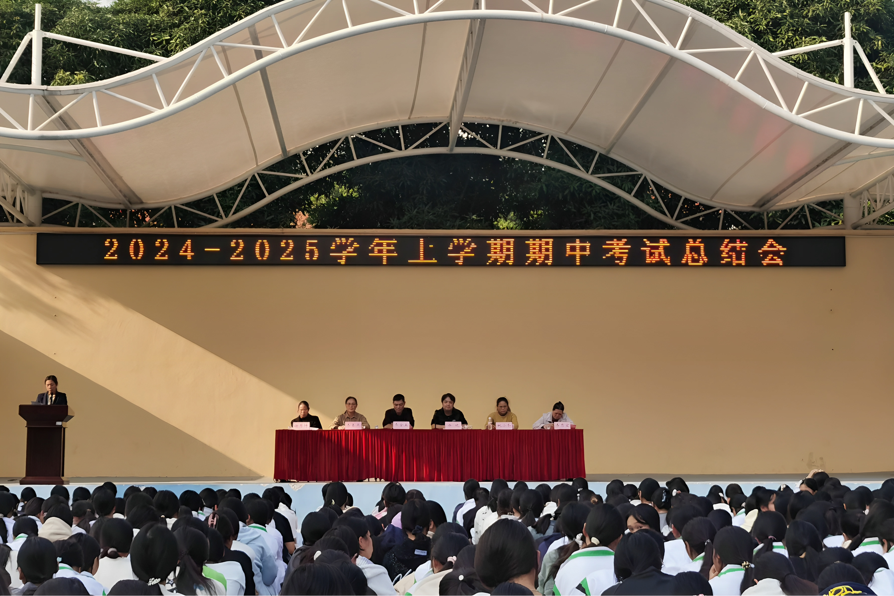 为激励先进,营造浓厚的学习氛围,充分调动师生的主动性和积极性,12月3日下午,南宁市卫生学校分别在相思湖校区和黎塘校区召开2024-2025学年度上学期期中考试总结会。学校副校长韦金英、卢青,教务科中层干部、教研室主任和全体在校学生及班主任参加了此次大会。