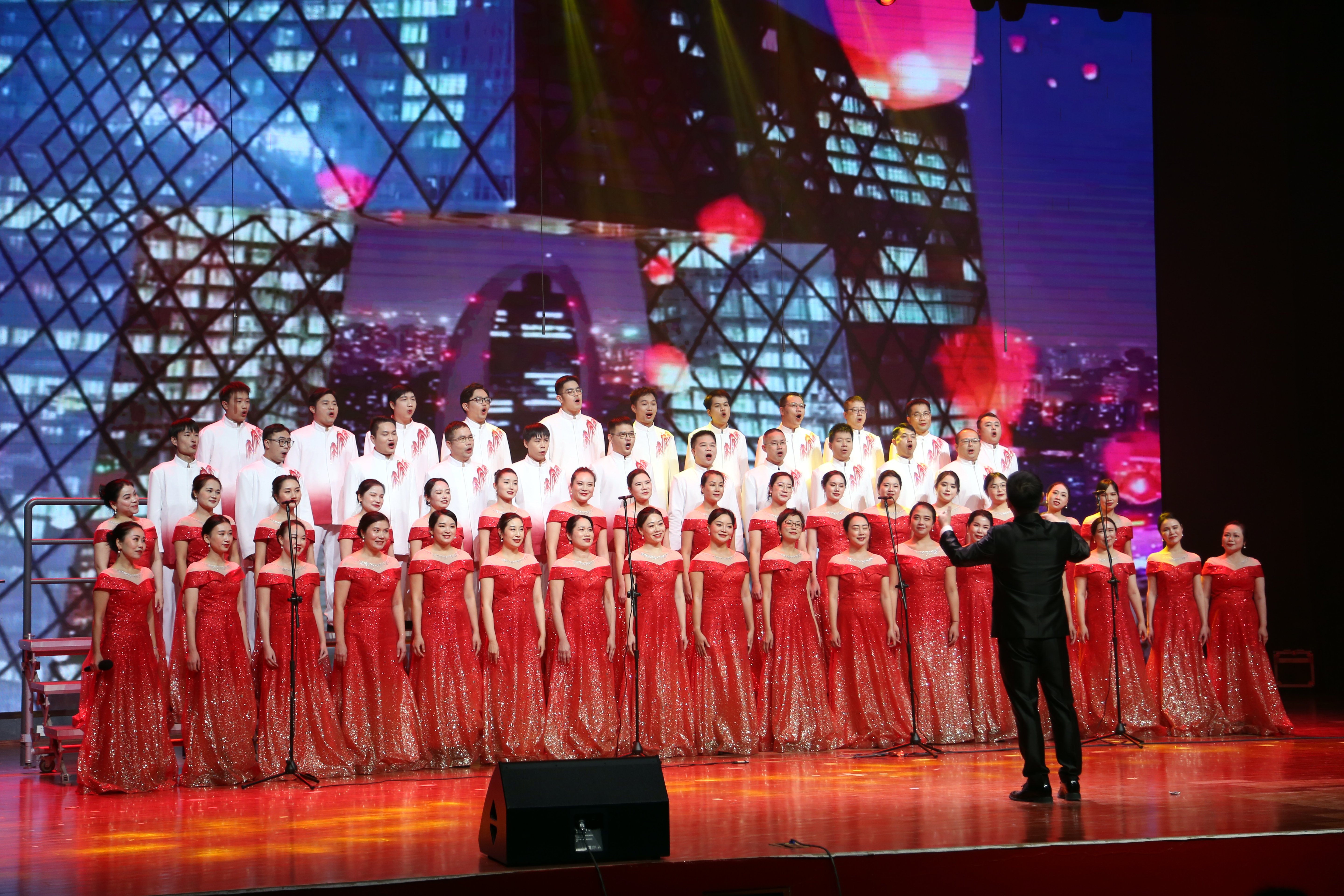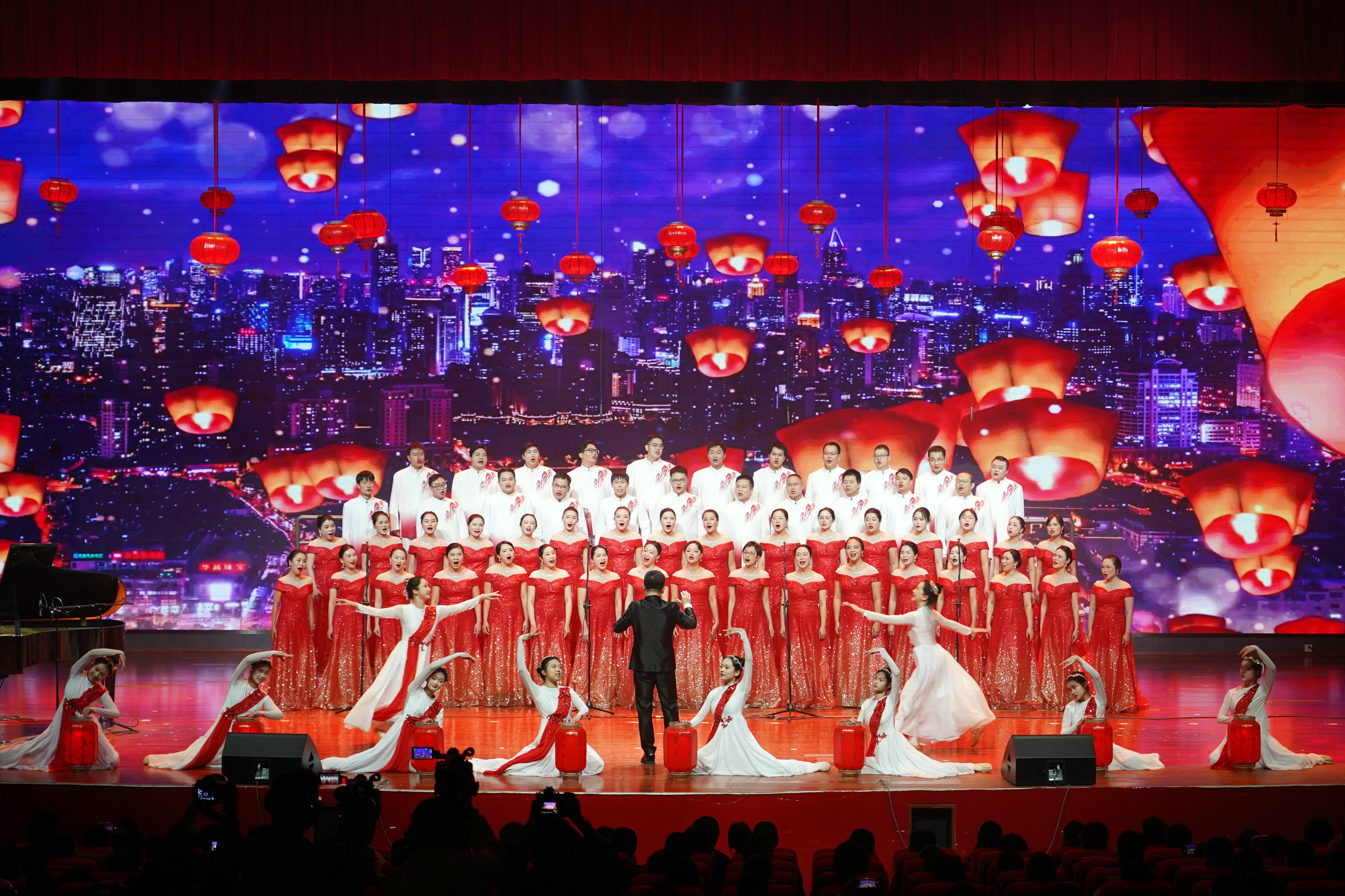 “灯火里的中国安宁祥和,在这片灯火阑珊的土地上,我们以爱为光,践行着教育初心的承诺……”舞台上,教师们脸上洋溢着对祖国的热爱和自豪,为观众带来合唱歌曲《灯火里的中国》。纯净动人的歌声、悠长激昂的旋律,连接着台上与台下,连接着过去与未来。教师们饱含深情地合唱,抒发了对祖国的深厚情感,彰显了为社会培养医药卫生事业人才的高昂斗志,展示了南宁市卫生学校的风采。