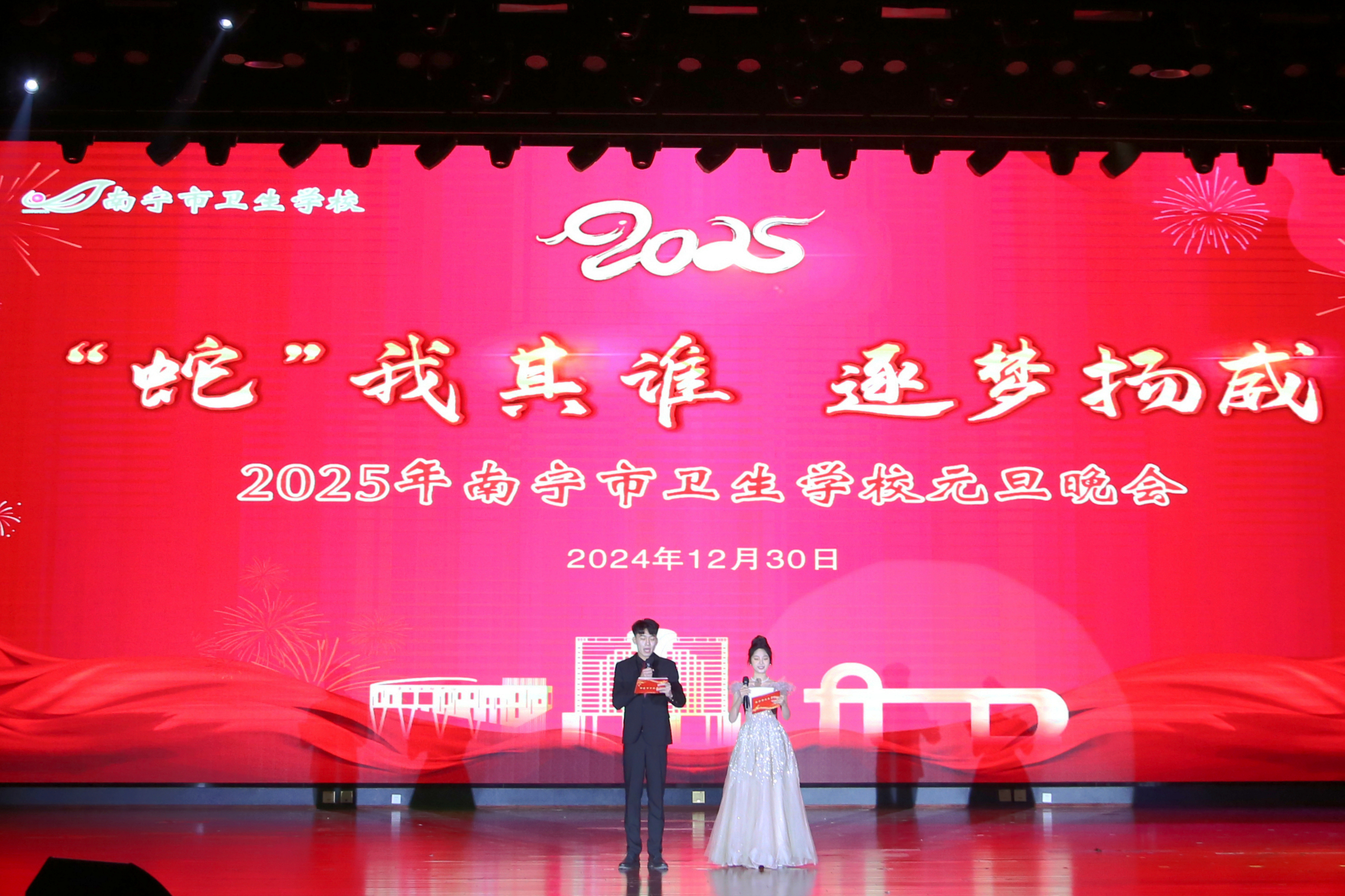 青蛇送福瑞,双春启新程。12月29—30日,南宁市卫生学校相思湖校区、黎塘校区相继举办2025年元旦联欢晚会。师生们欢聚一堂,共同迎接新年的到来。