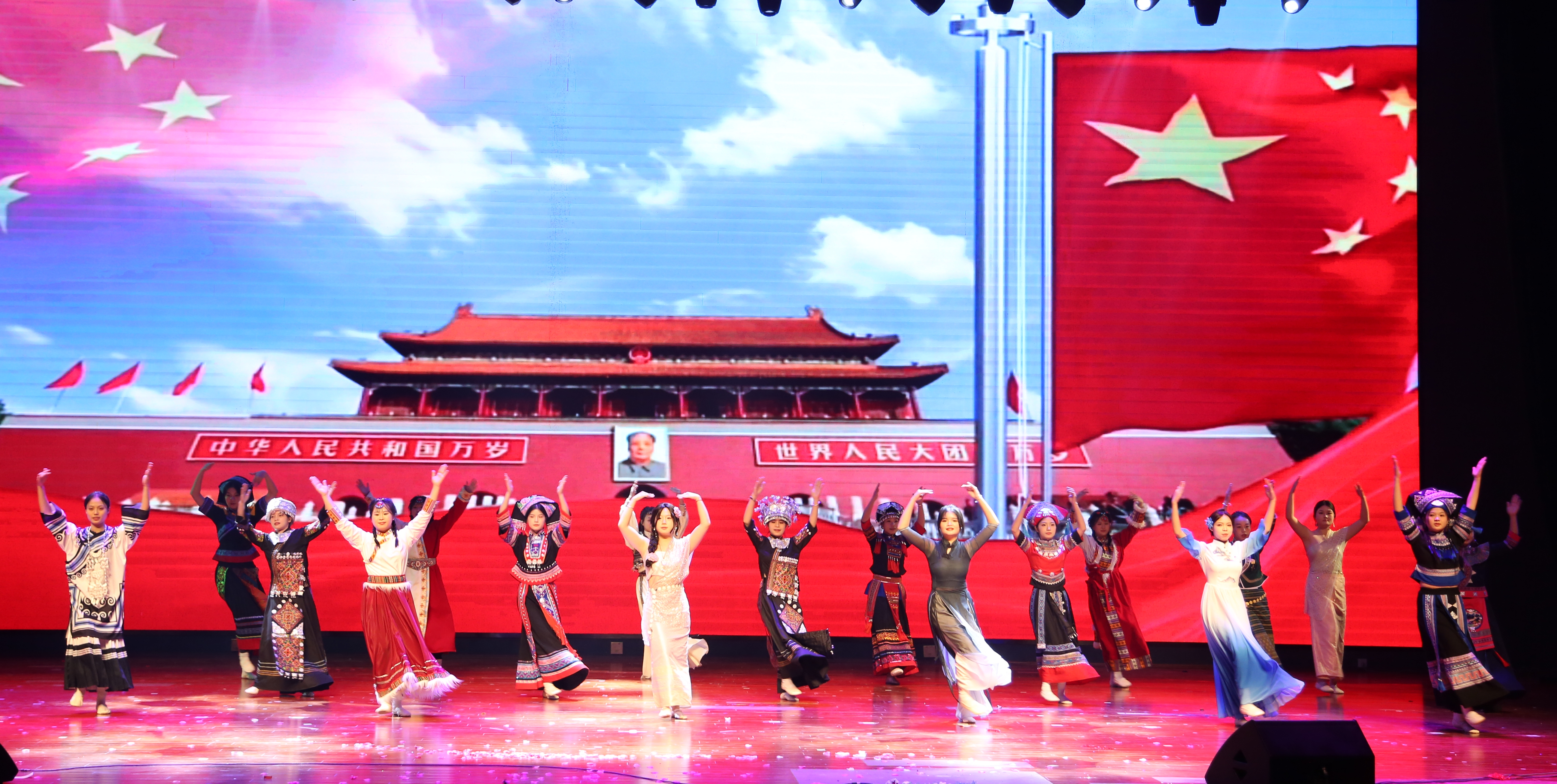 青春是跳动的音符,音乐在跳动,青春在飞扬。晚会上,师生们用动听的歌声、曼妙的舞姿、诙谐的语言,展现了热情活力、奋斗不息的精神面貌。合唱《理想在飞翔+灯火里的中国》、舞蹈《弥渡山歌》、小品《神医》、朗诵《美丽中国》……各类精彩纷呈的节目令人目不暇接,为在场观众带来一场美轮美奂的视听盛宴。