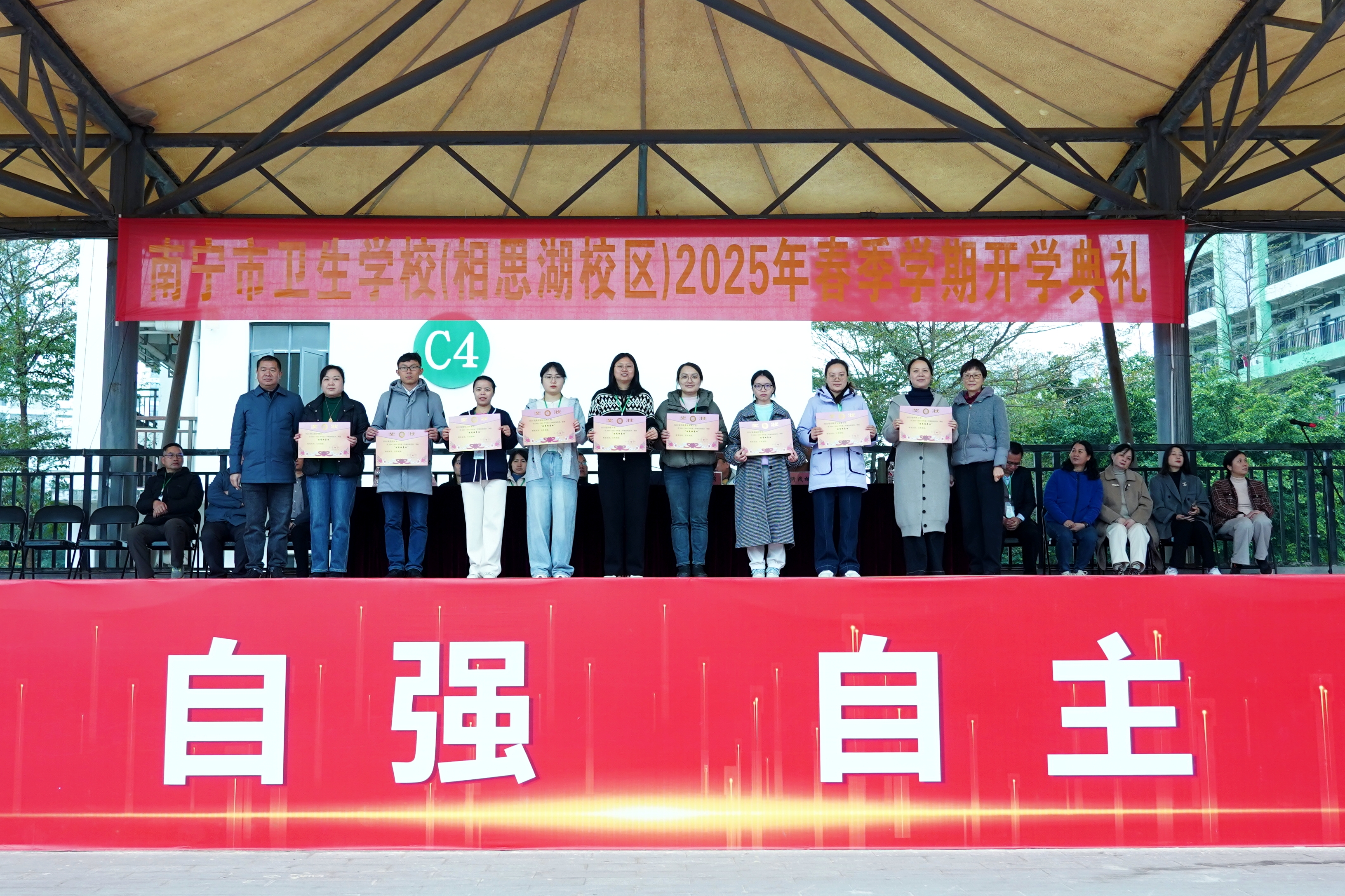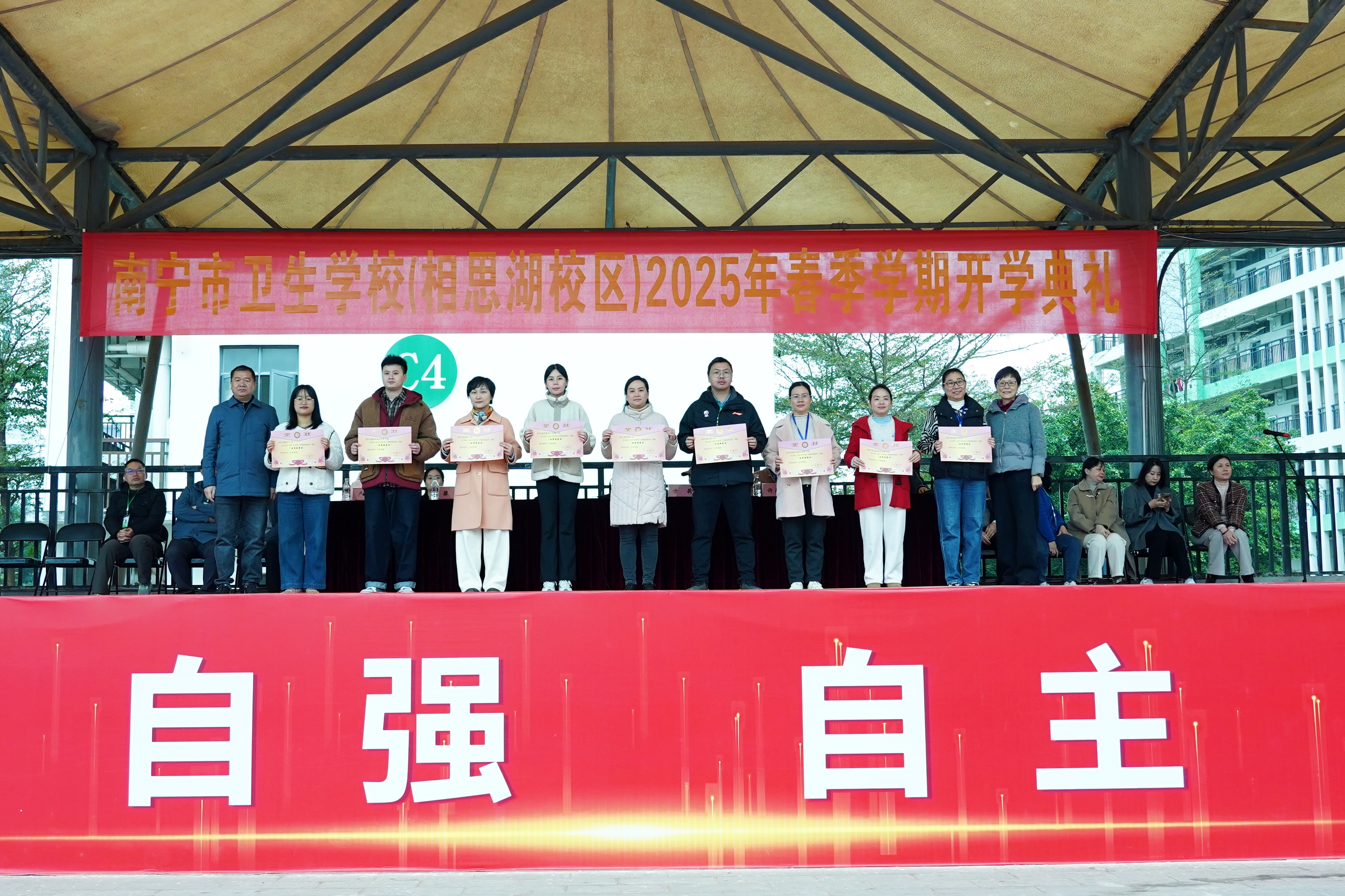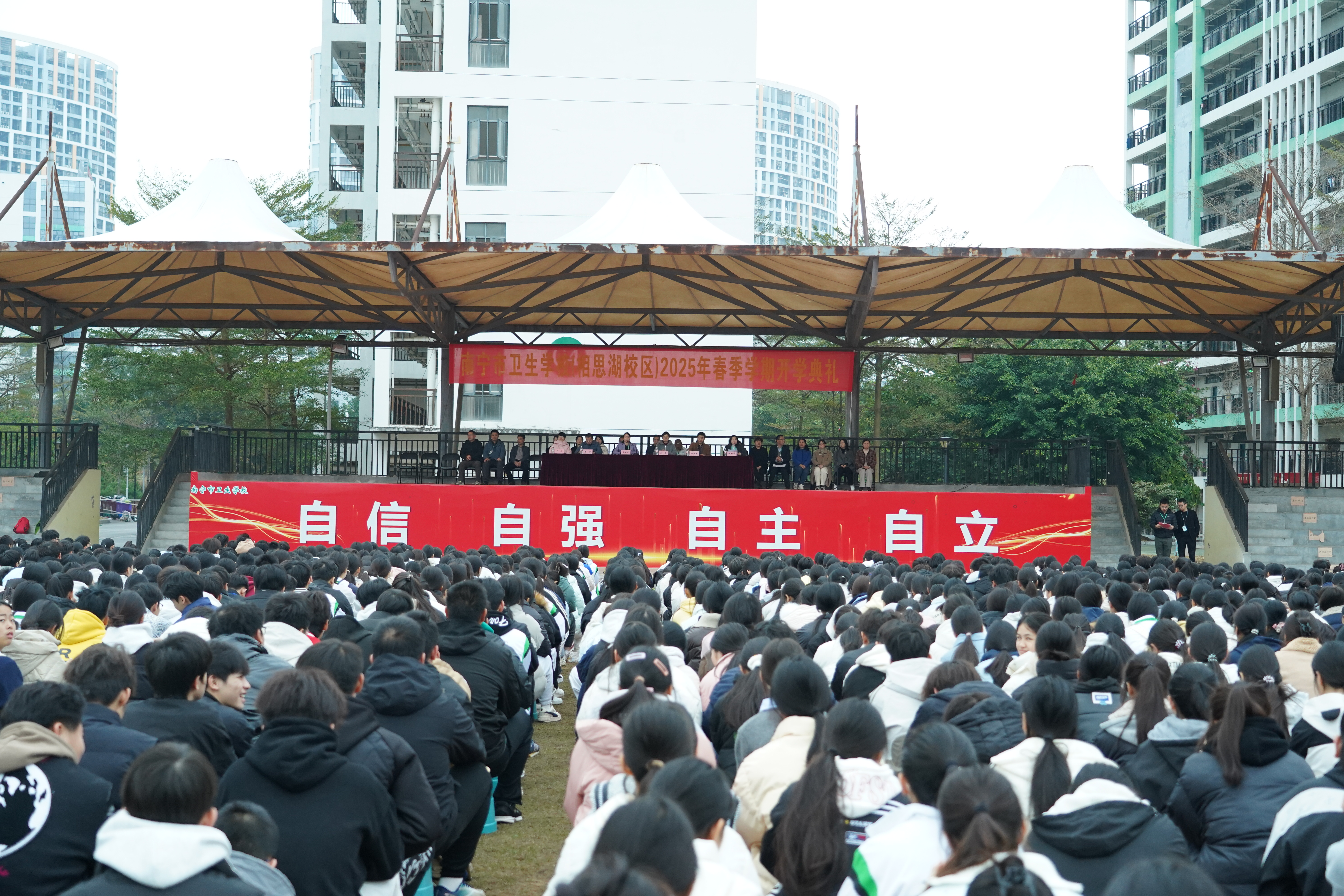 春光为序,奋楫扬帆。为确保开学各项工作有条不紊地开展,起好步、开好局、谋好篇,2月17日上午,南宁市卫生学校相思湖校区、黎塘校区共同举行南宁市卫生学校2025年春学期开学典礼。学校领导班子、全体中层、在校班级班主任及全体学生参加此次活动。