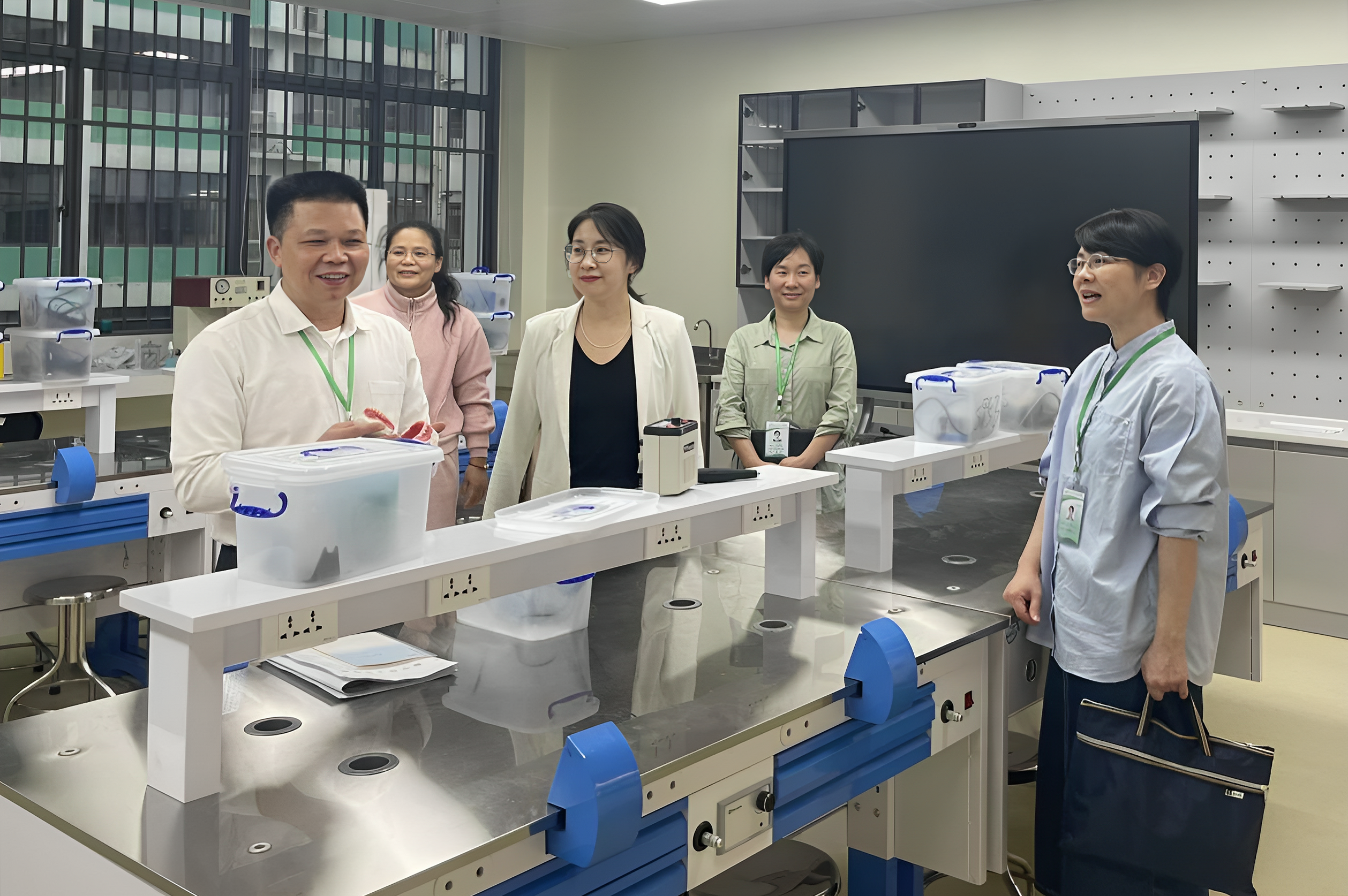 查房工作采取“实地考察+专题研讨”双轨模式。校领导一行走访了口腔医学技术实训室等教学场所,对教学环境、设施设备、安全卫生等情况进行全面了解。随后,口腔医学技术教研室副主任王瑛瑛围绕教研室基本情况、师资队伍、自治区“优质专业”建设、教学科研等方面进行汇报,并提出了教学工作中存在的堵点问题及需学校协调解决的事项。