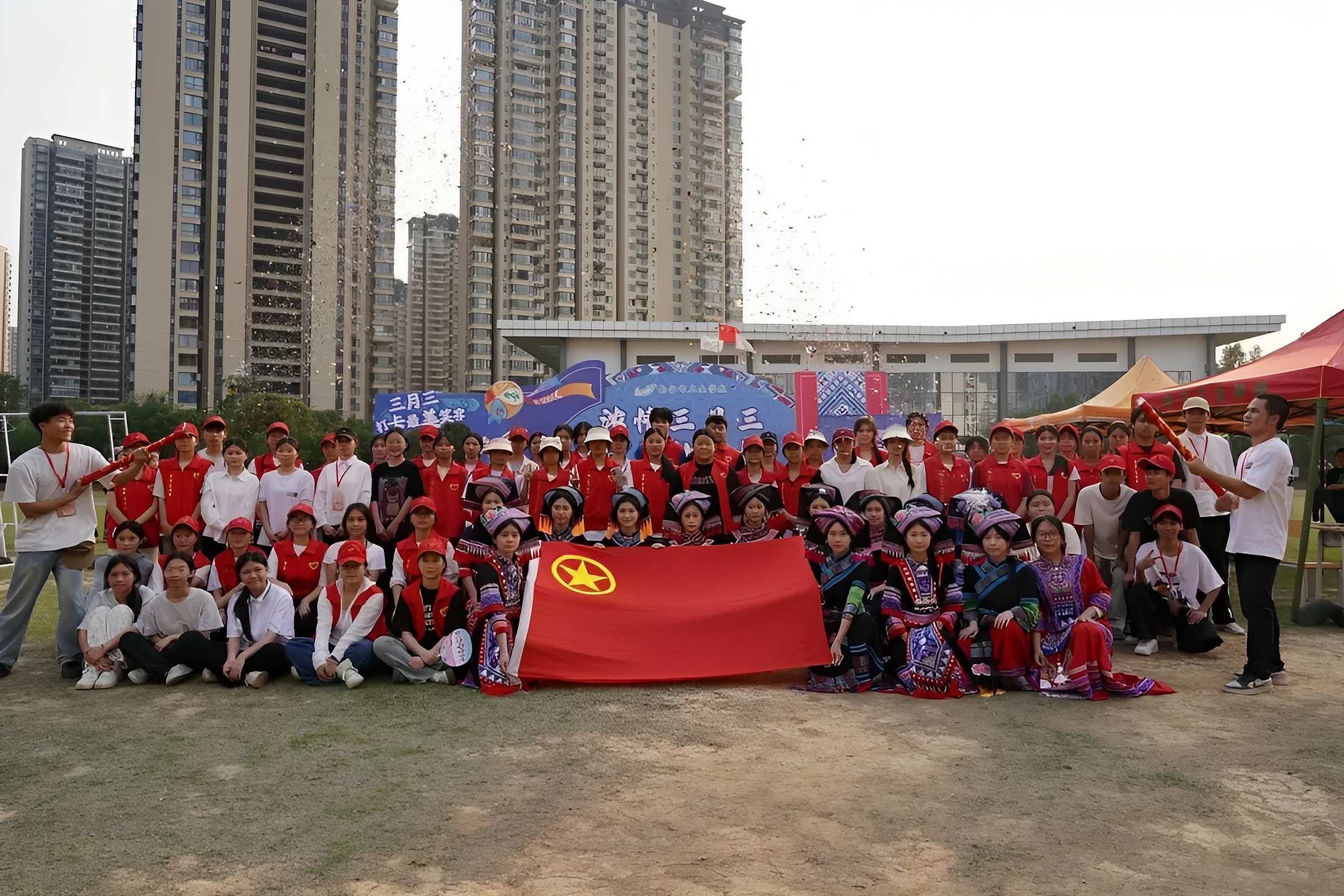 3月27日,为迎接“三月三”传统节日,学校团委组建民族文化志愿服务队,积极参与学校“浓情三月三 传承壮乡情”民族文化活动。志愿者身着民族服饰,协助开展五色糯米饭制作、抛绣球、跳竹竿舞、知识问答、中草药香囊体验等特色项目,吸引了1200余名师生参与;3月30日,学校团委组织志愿者到梧桐苑社区配合开展广西壮族“三月三”活动,以青春力量助力文化振兴。
