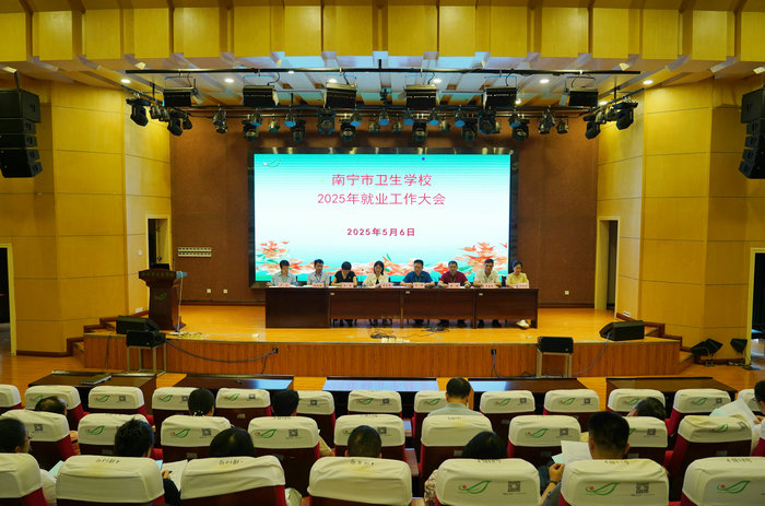 5月6日,南宁市卫生学校在两校区视频召开2025年就业工作大会,全面部署2025届毕业生就业攻坚任务。学校领导班子、中层干部及2022级、2023级班主任参会,副校长梁恒主持会议。