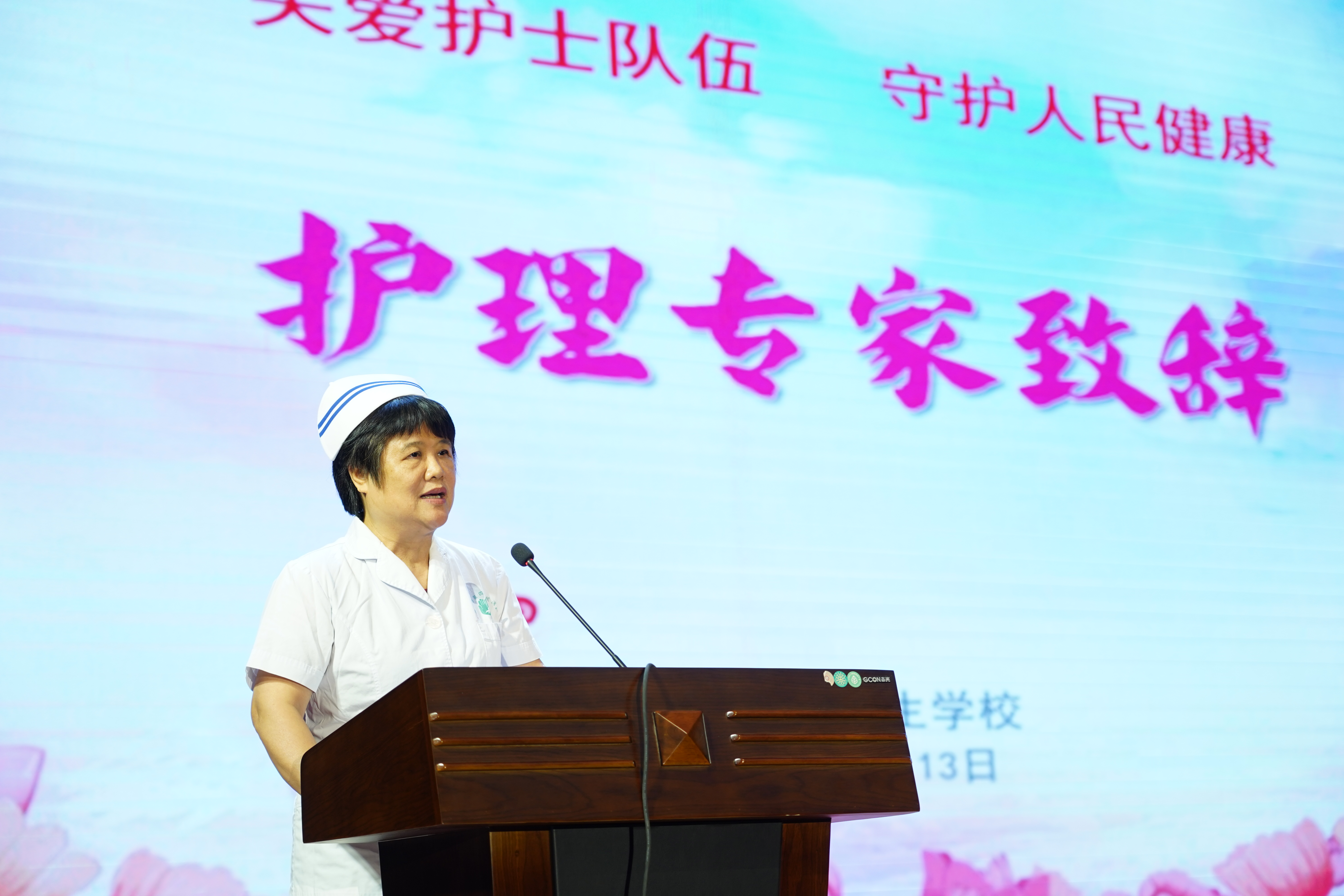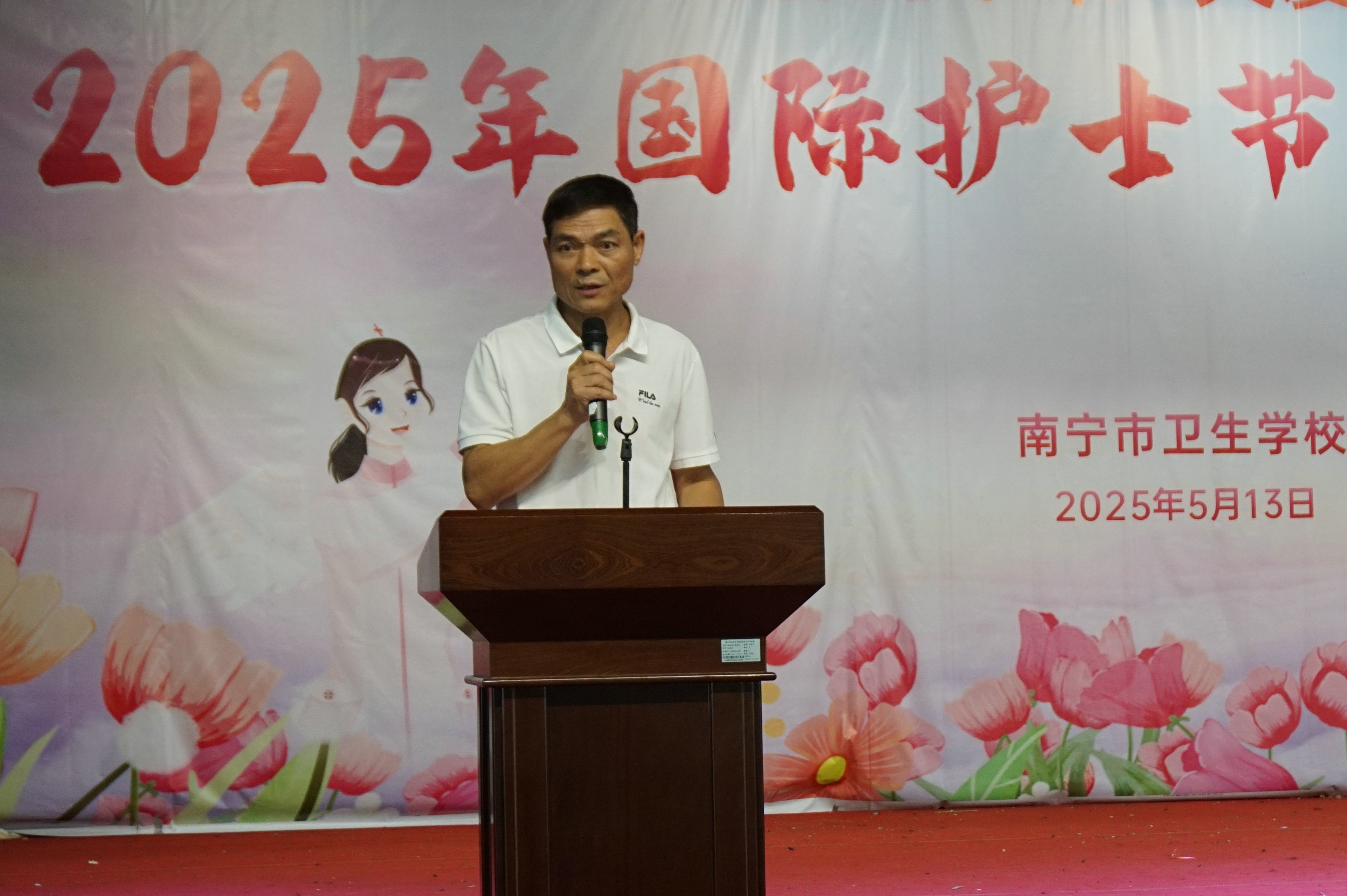 活动伊始,副校长韦金英在黎塘校区、副校长卢青在相思湖校区分别发表热情洋溢的致辞,向辛勤耕耘在护理教育一线的教师们致以节日的问候,衷心感谢他们坚守三尺讲台传承医者仁心,锻造护理技能,悉心培育护理事业接班人,祝贺他们在2024年以来指导学生参加各级技能大赛,荣获国家级铜奖1个、自治区级奖项16个、市级奖项6个的好成绩。同时,对在场的护理专业学生提出了殷切期望,希望他们以护理前辈为榜样,努力学习,积淀专业知识,锤炼临床技能,培育人文情怀,立志成为一名人民健康的守护者,为健康中国贡献自己的力量。