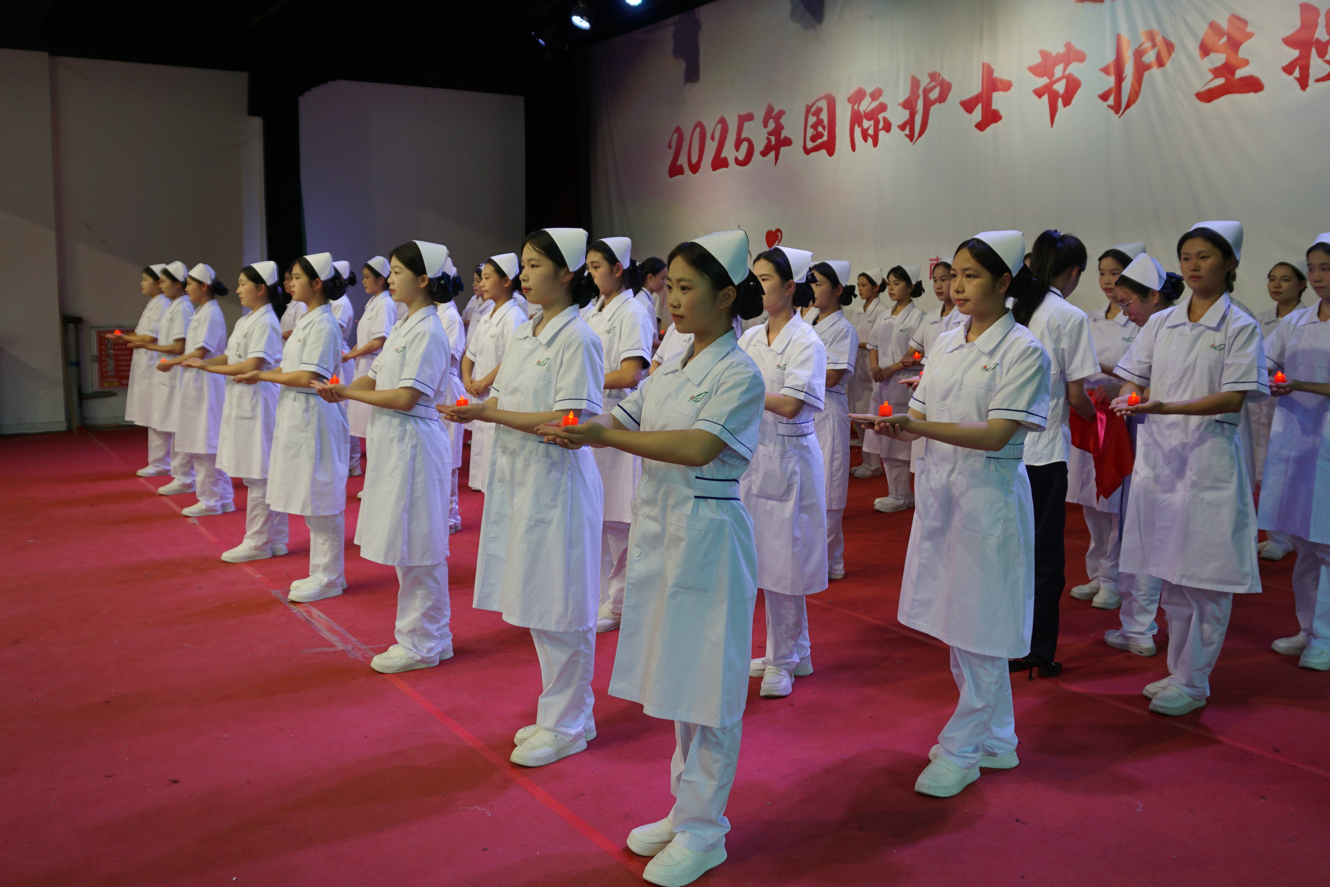 在随后进行燃烛仪式中,护生们手捧蜡烛,缓缓前行,烛光摇曳,照亮了整个会场。这点点烛光,象征着南丁格尔精神的传承与延续,也寓意着护理人员在黑暗中为患者照亮希望之光。
